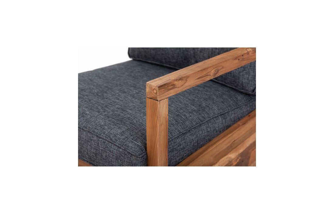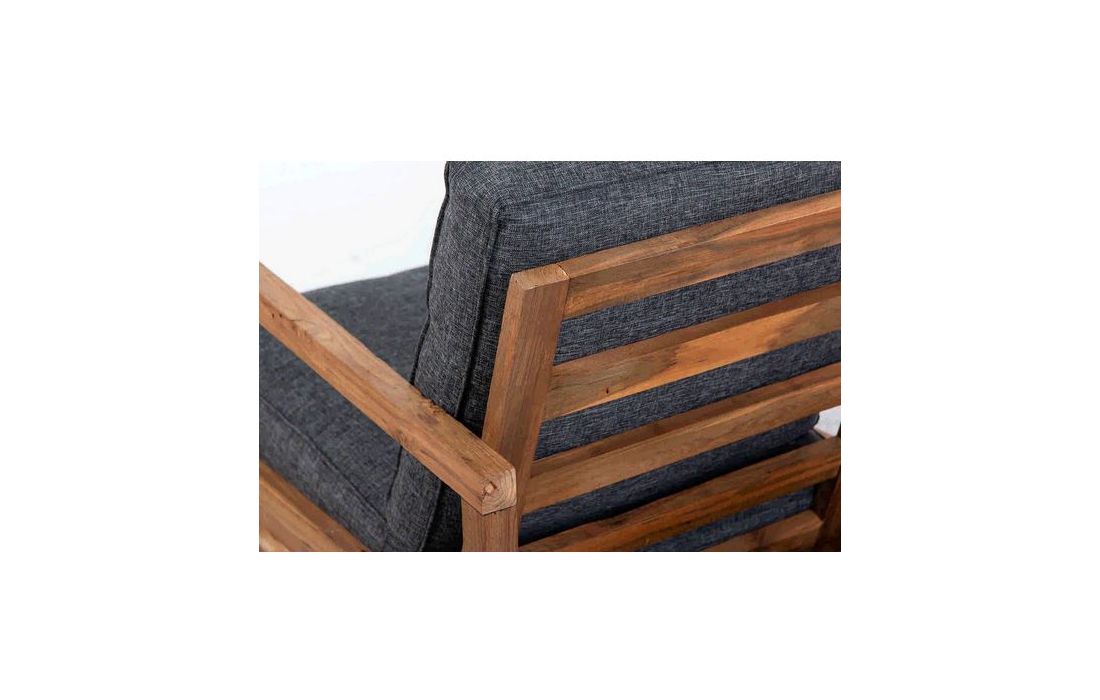 Teak wood armchair with cotton fabric seat and back