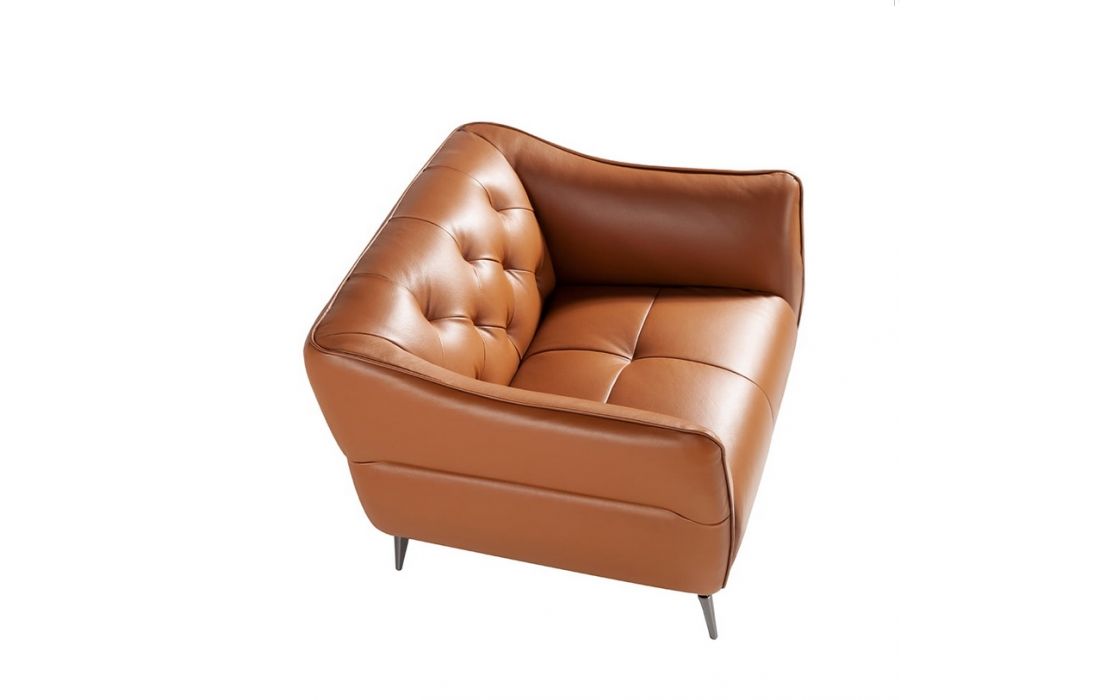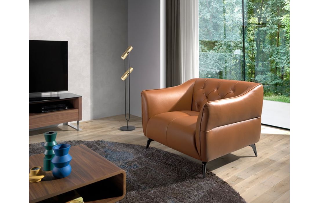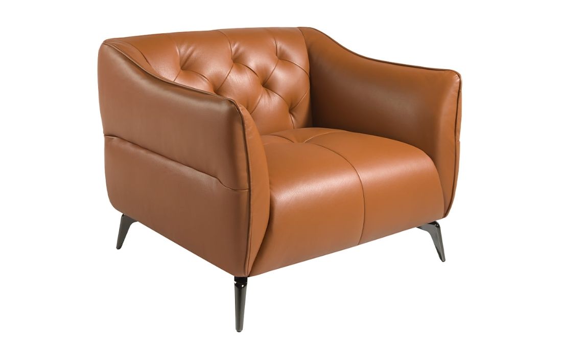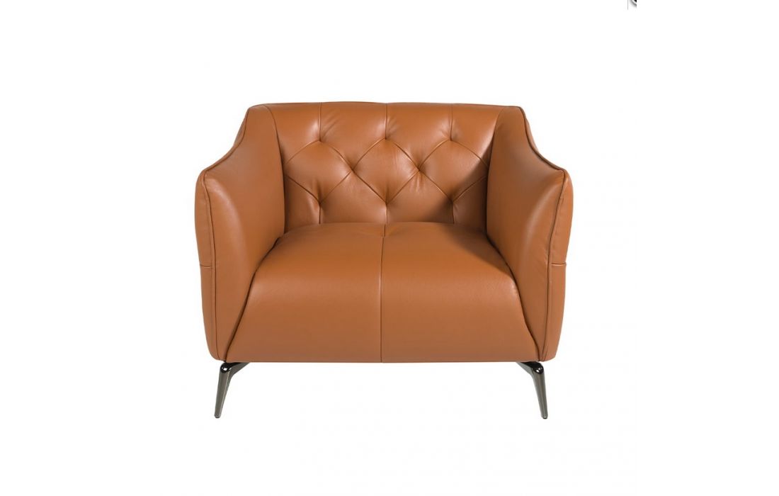 Tufted armchair upholstered in leather.