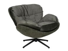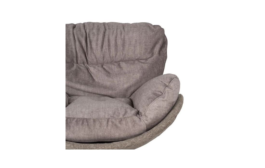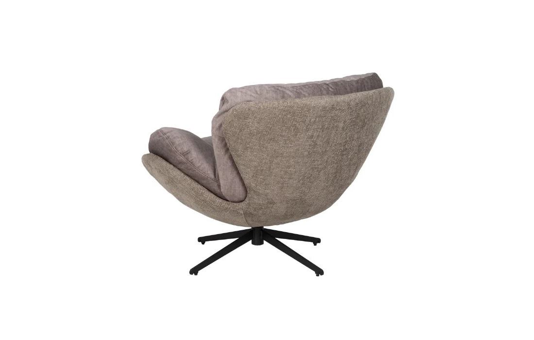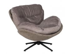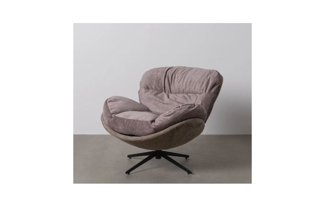 Swivel armchair in taupe-colored 100% polyester fabric with iron legs