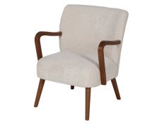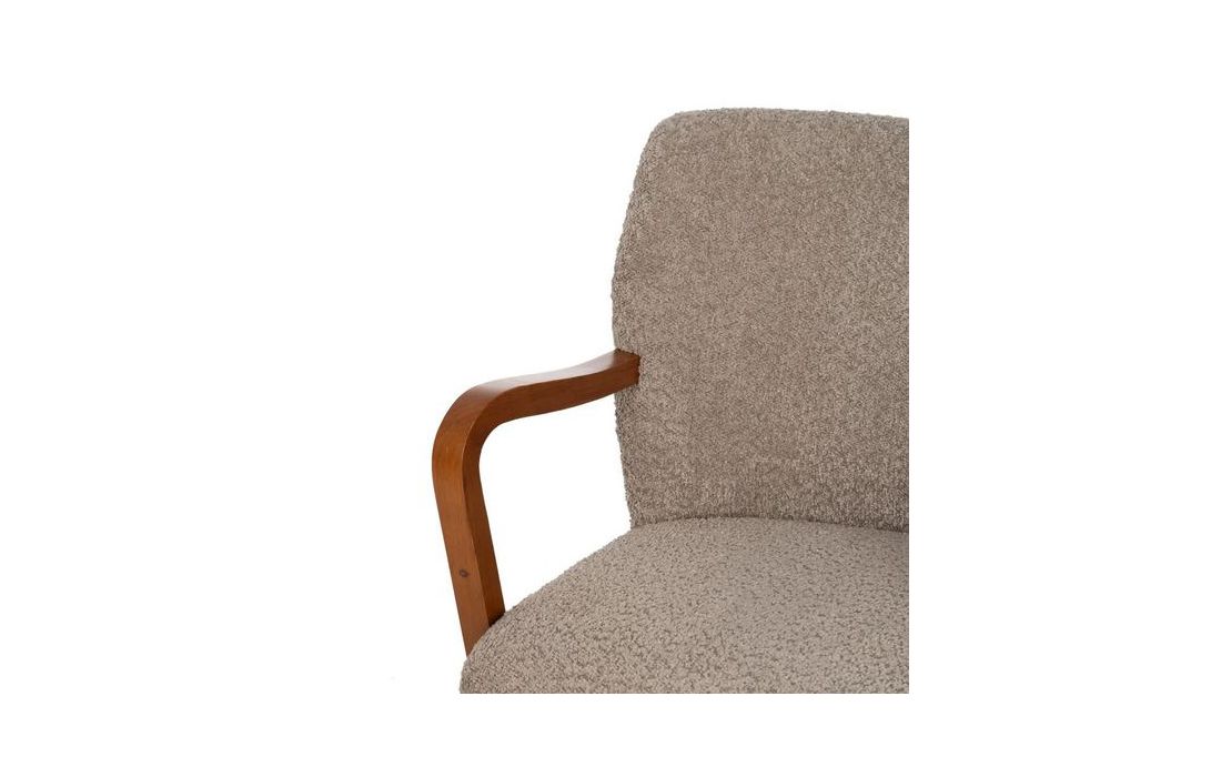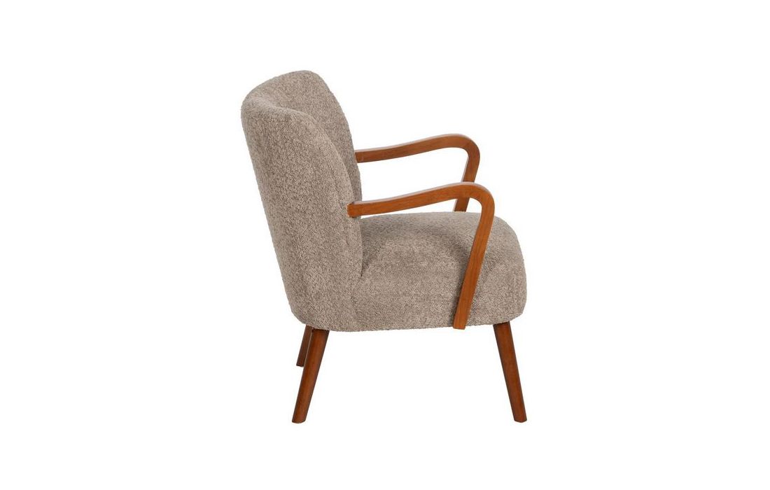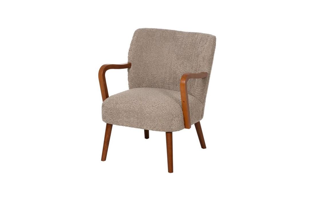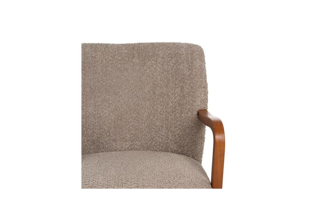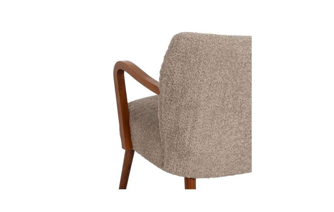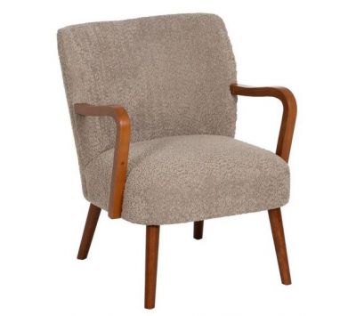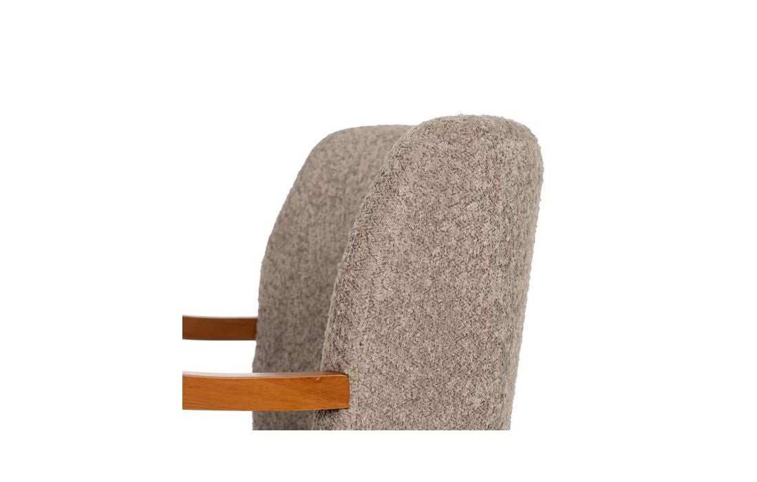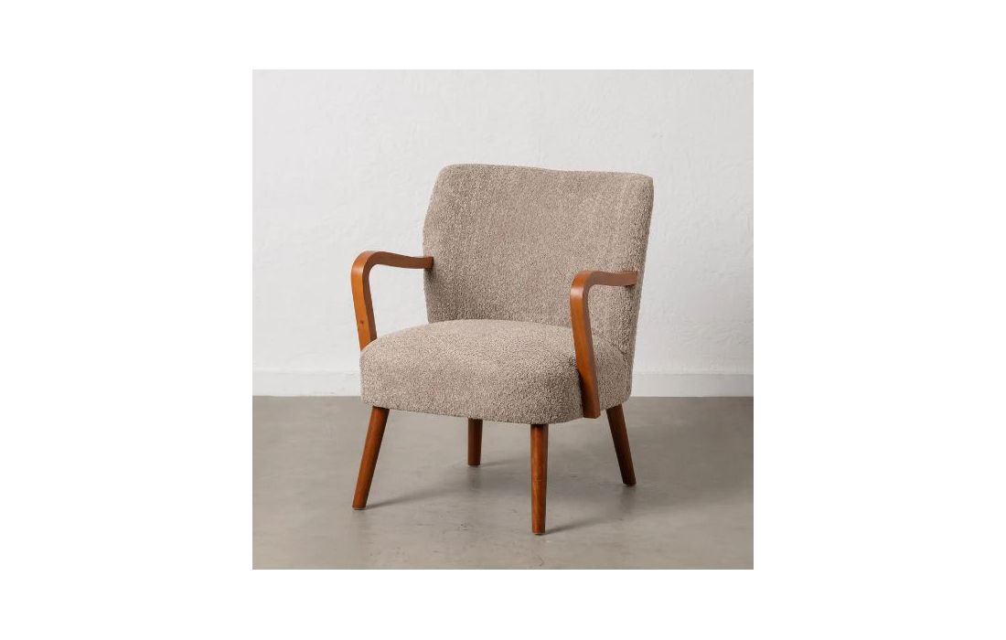 Armchair with rubber wood structure and upholstered in 100% polyester taupe fabric