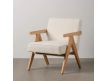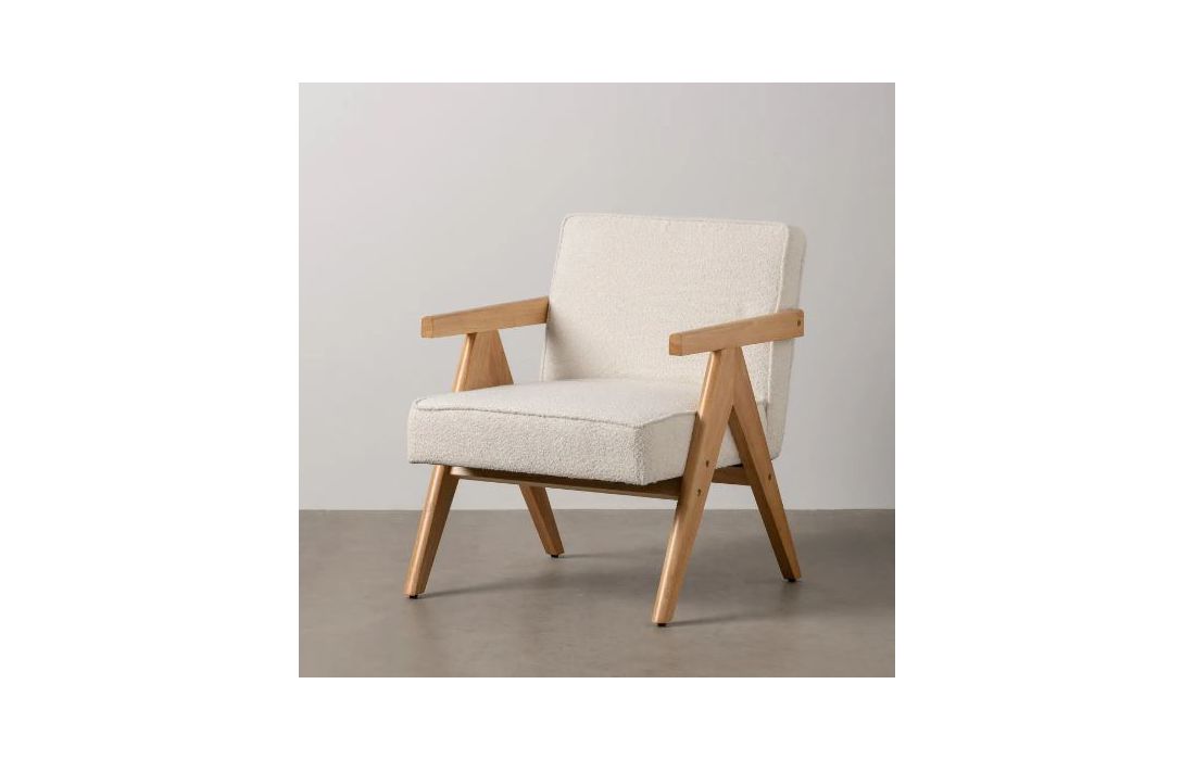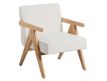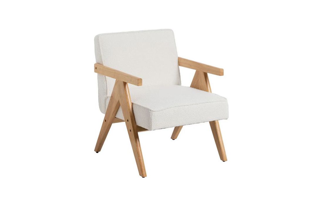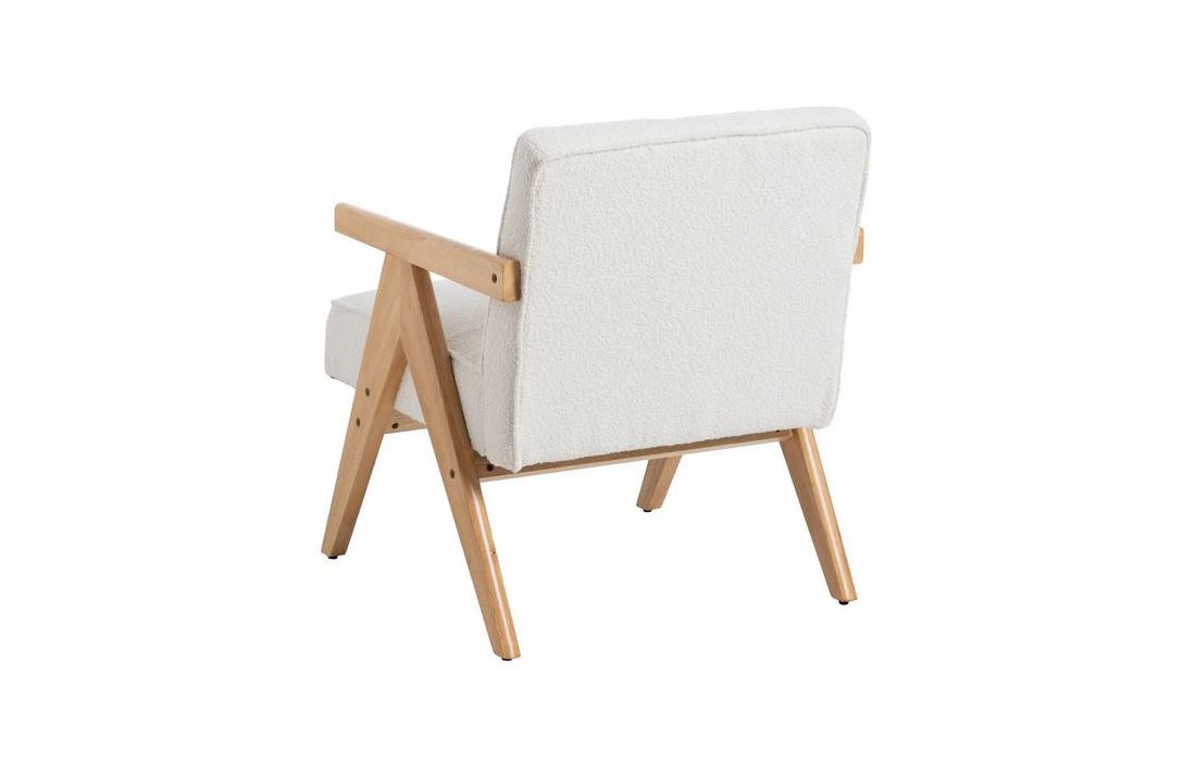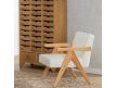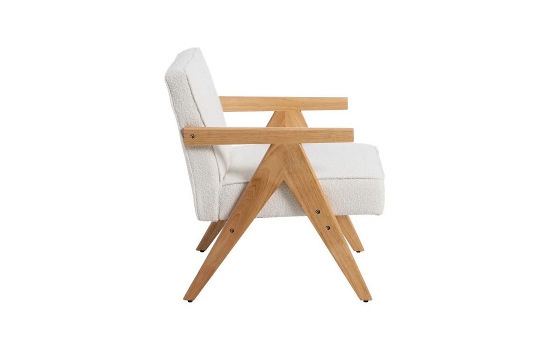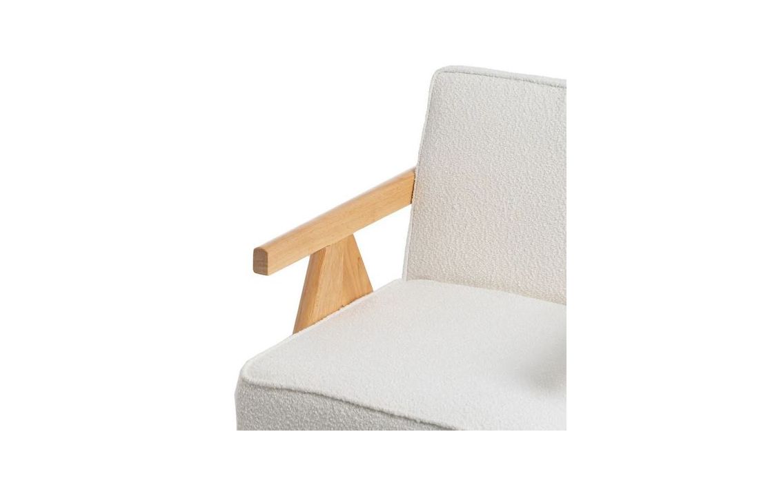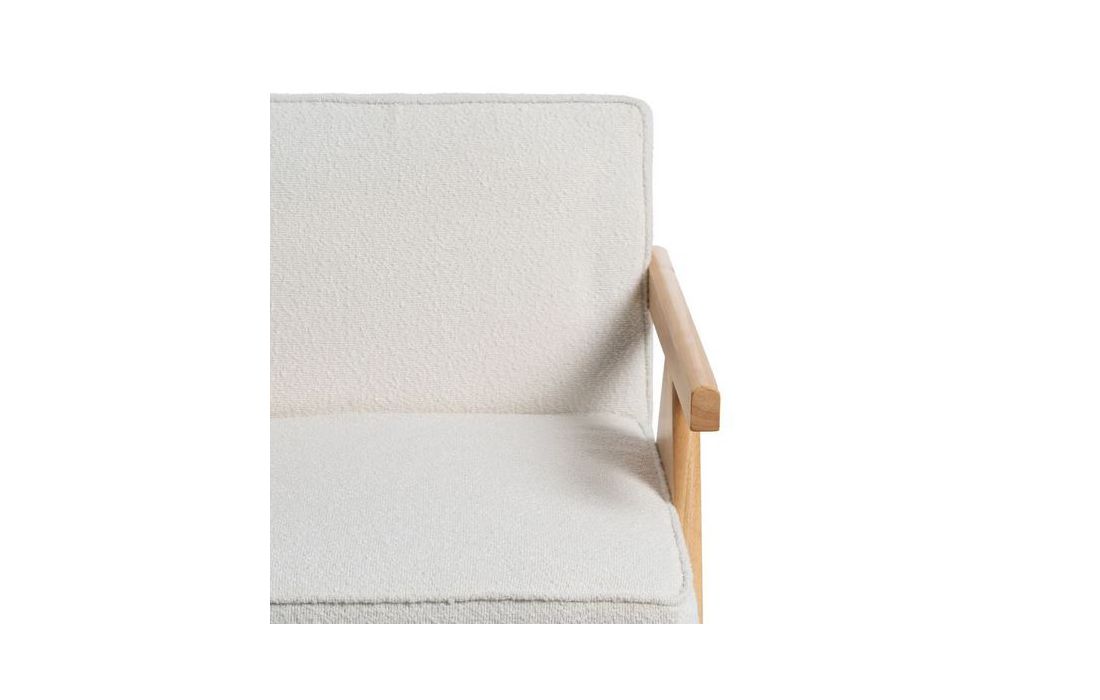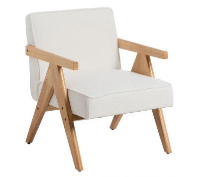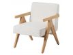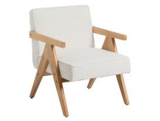 Armchair with structure in natural rubber wood and upholstery in white 100% polyester fabric