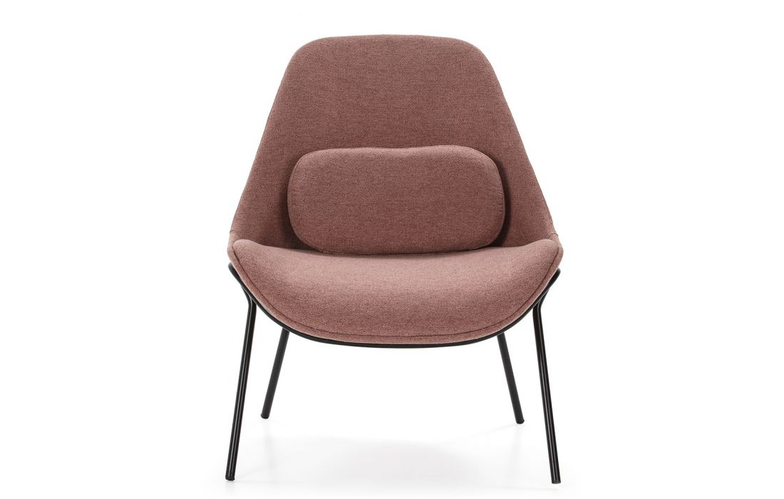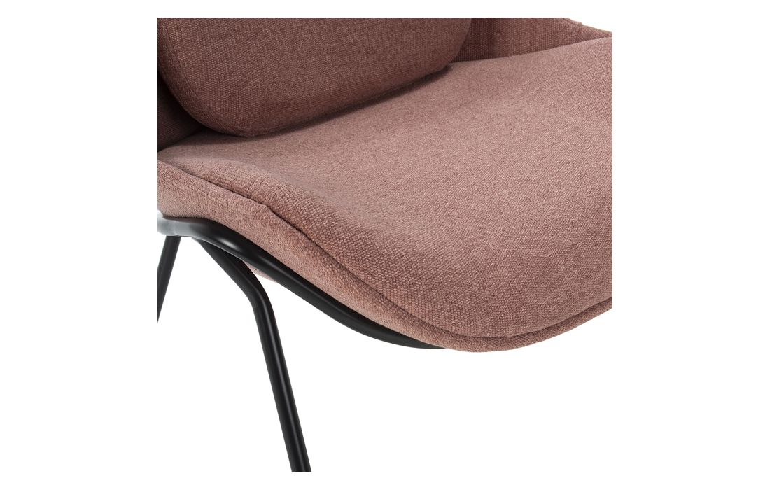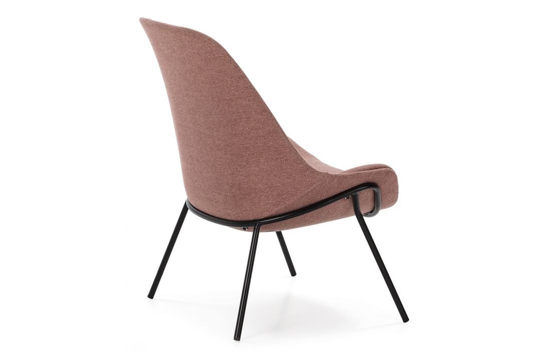 Armchair with black metal structure and upholstered in pink polyester fabric