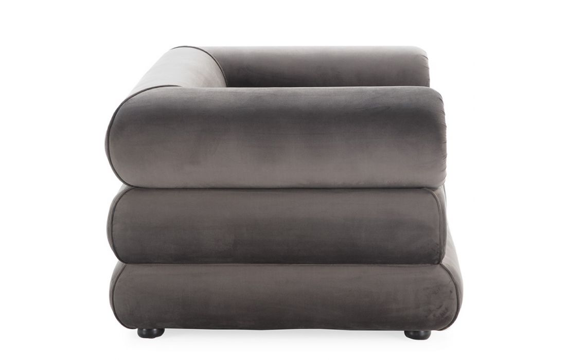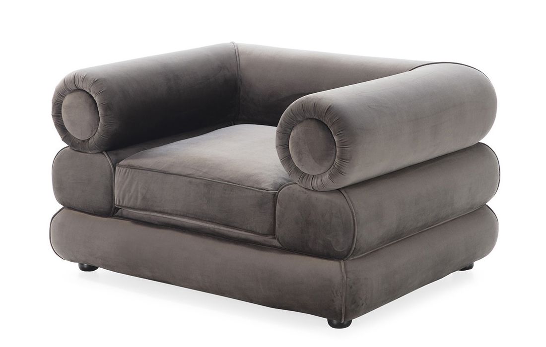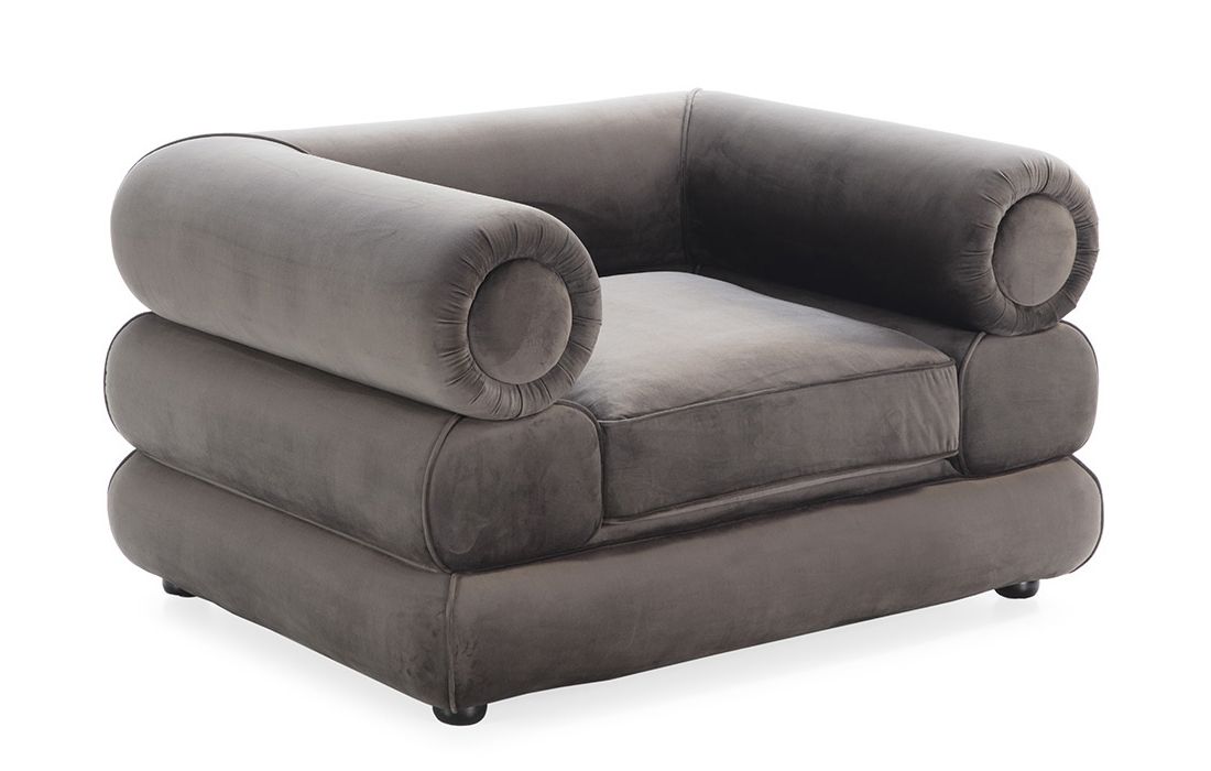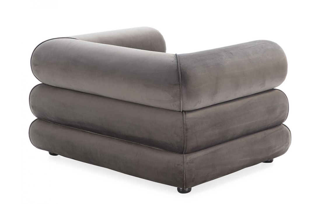 Armchair with upholstery in velvety 100% polyester gray fabric