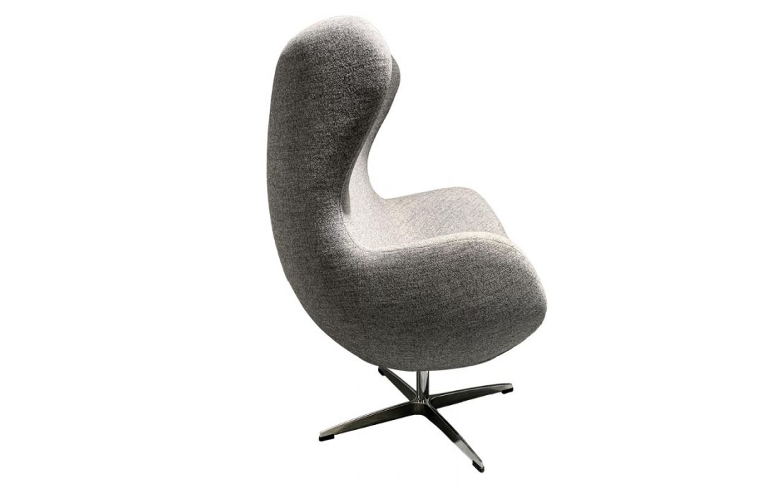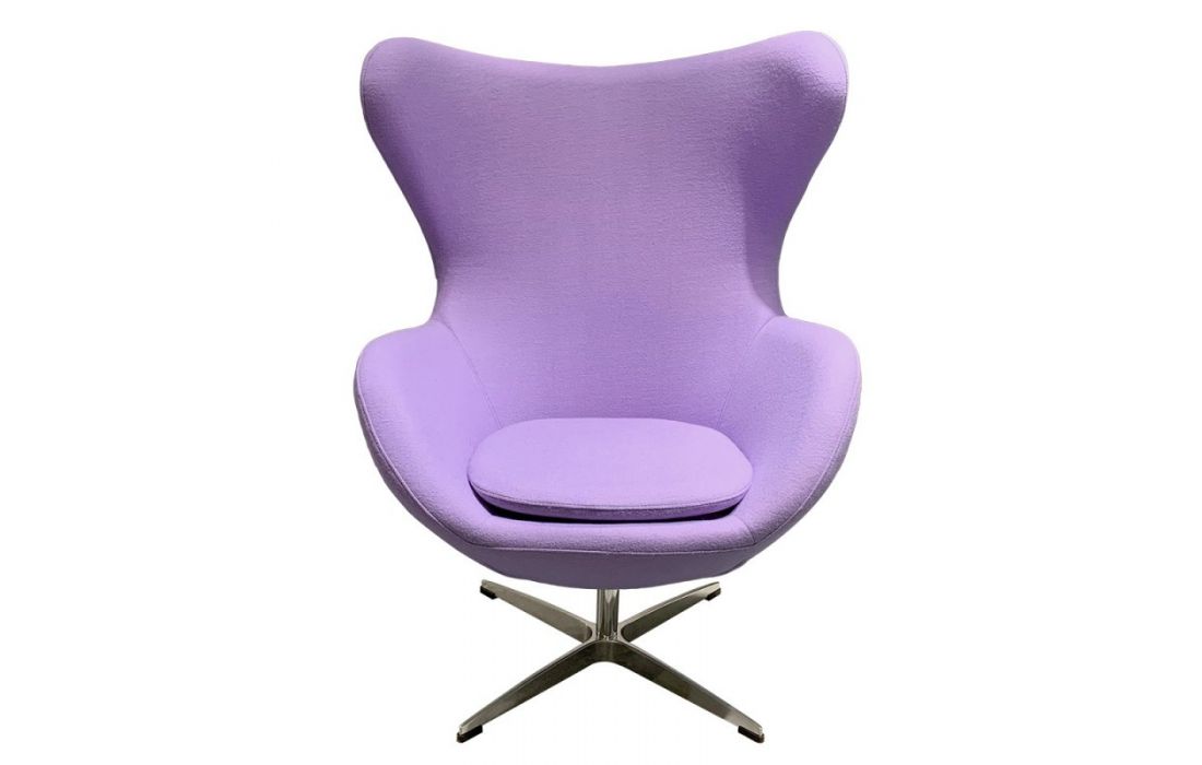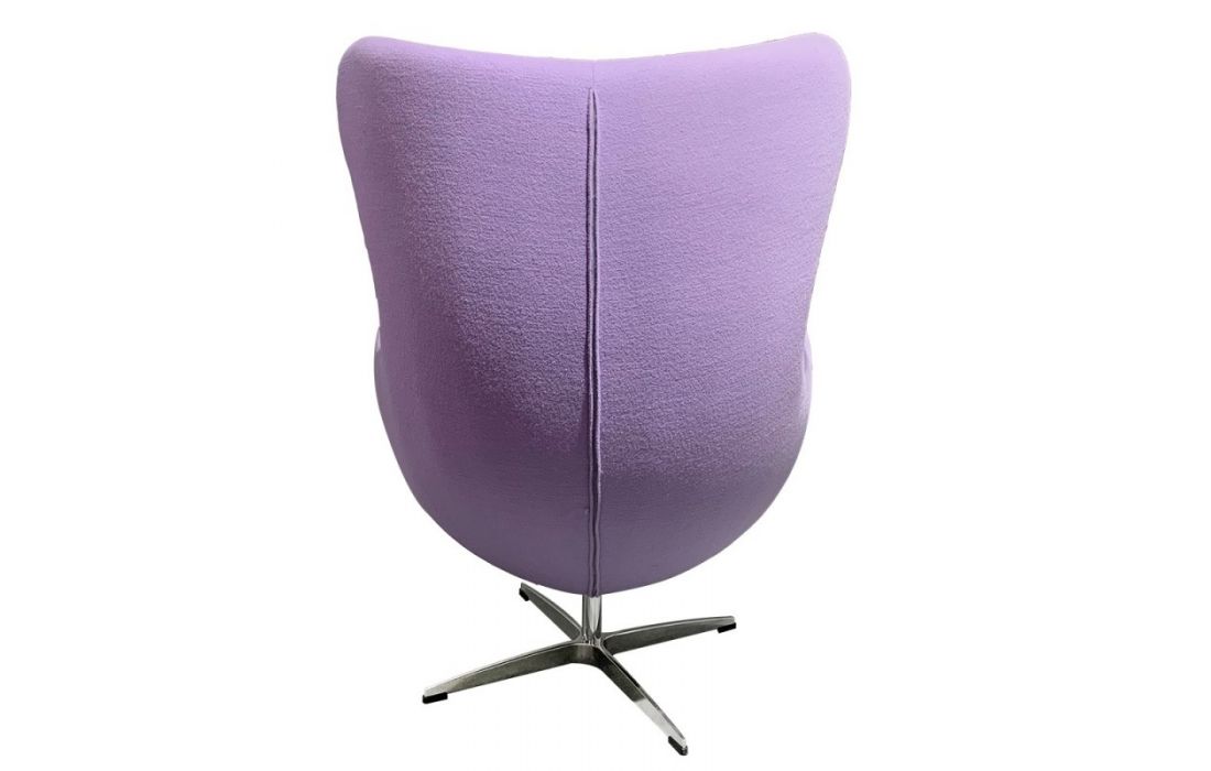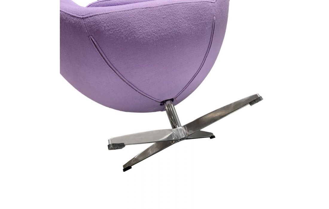 Swivel armchair with metal structure and covered with lilac and gray cachemir fabric.