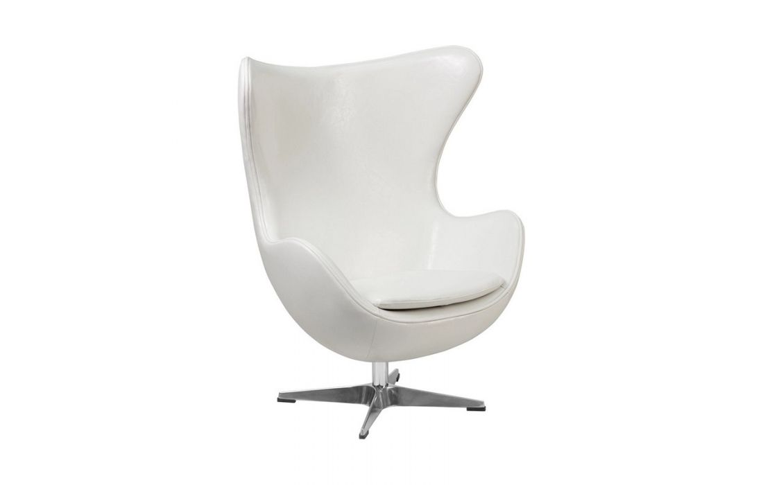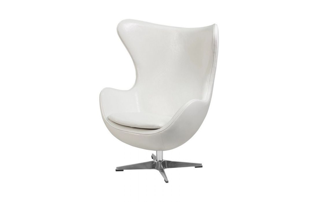 Swivel armchair with metal structure and covered with synthetic leather in white and black.