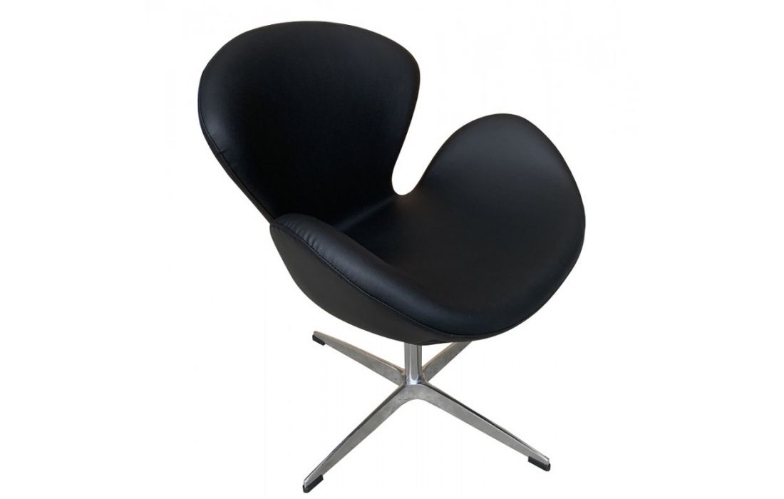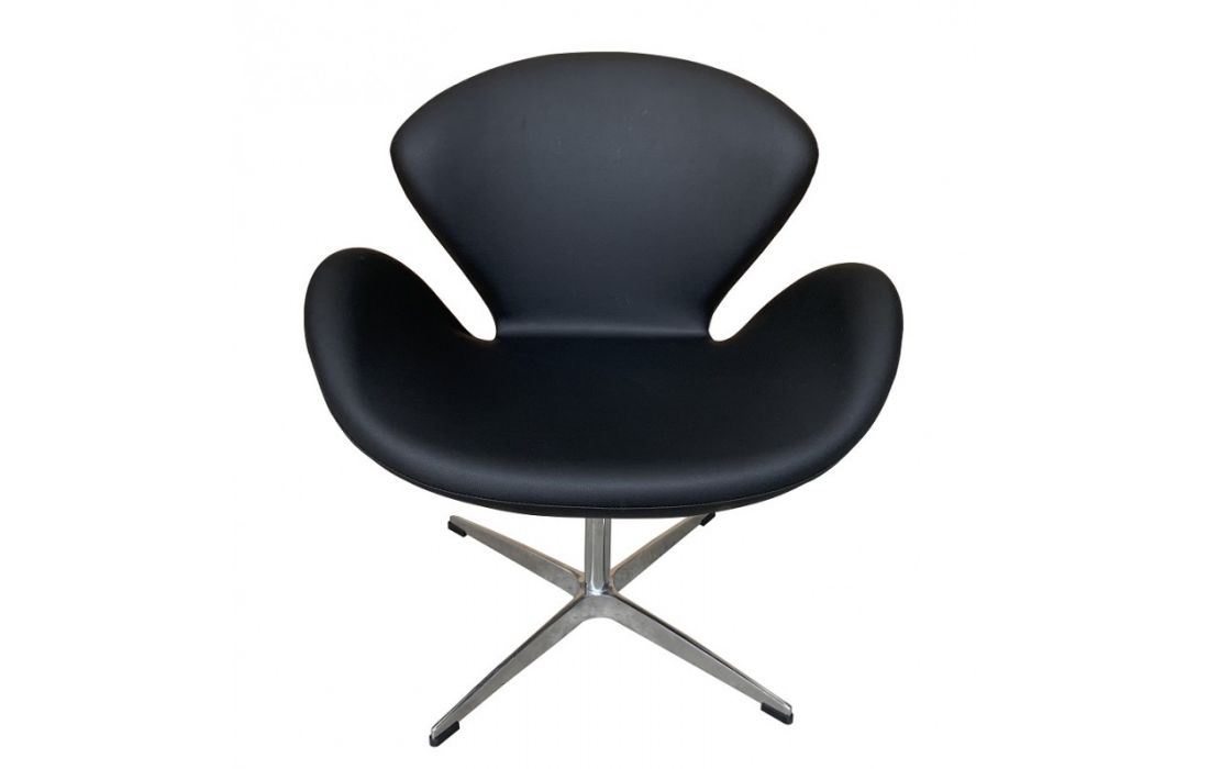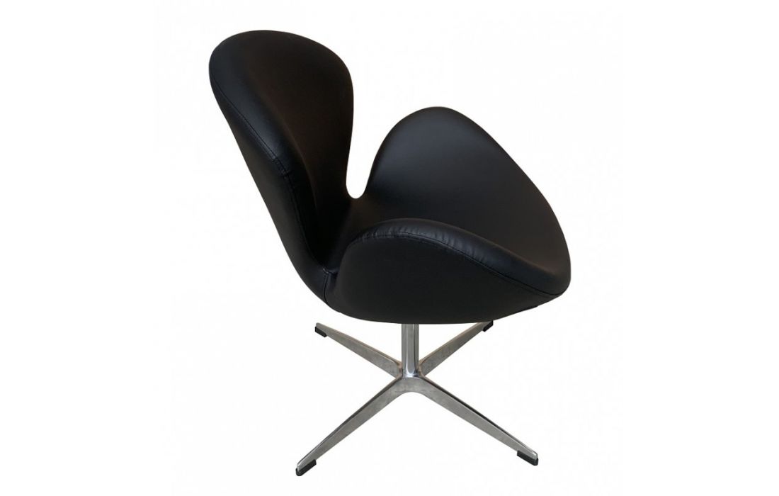 Swivel armchair with chrome base and column upholstered in synthetic leather.