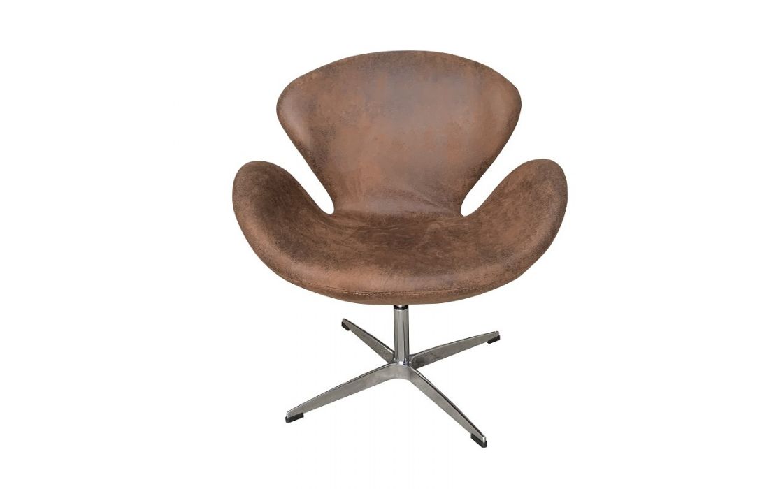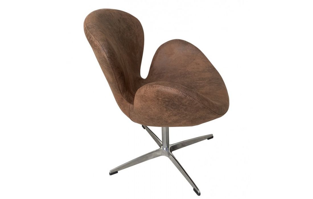 Swivel armchair with chrome base and column upholstered in vintage synthetic leather.