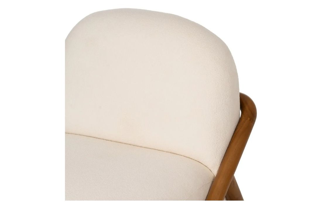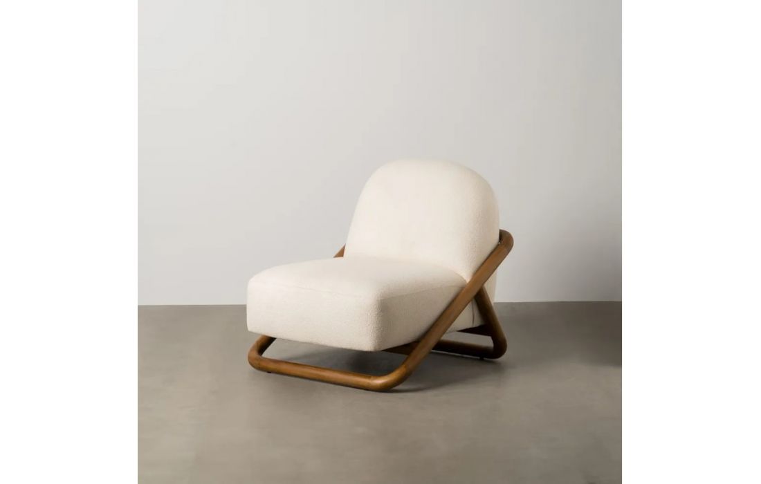 Modern design armchair with 100% polyester fabric structure, sponge filling and teak wood.