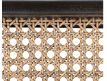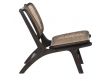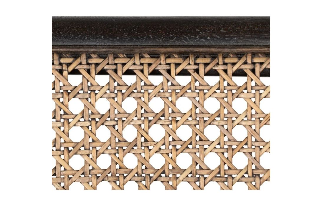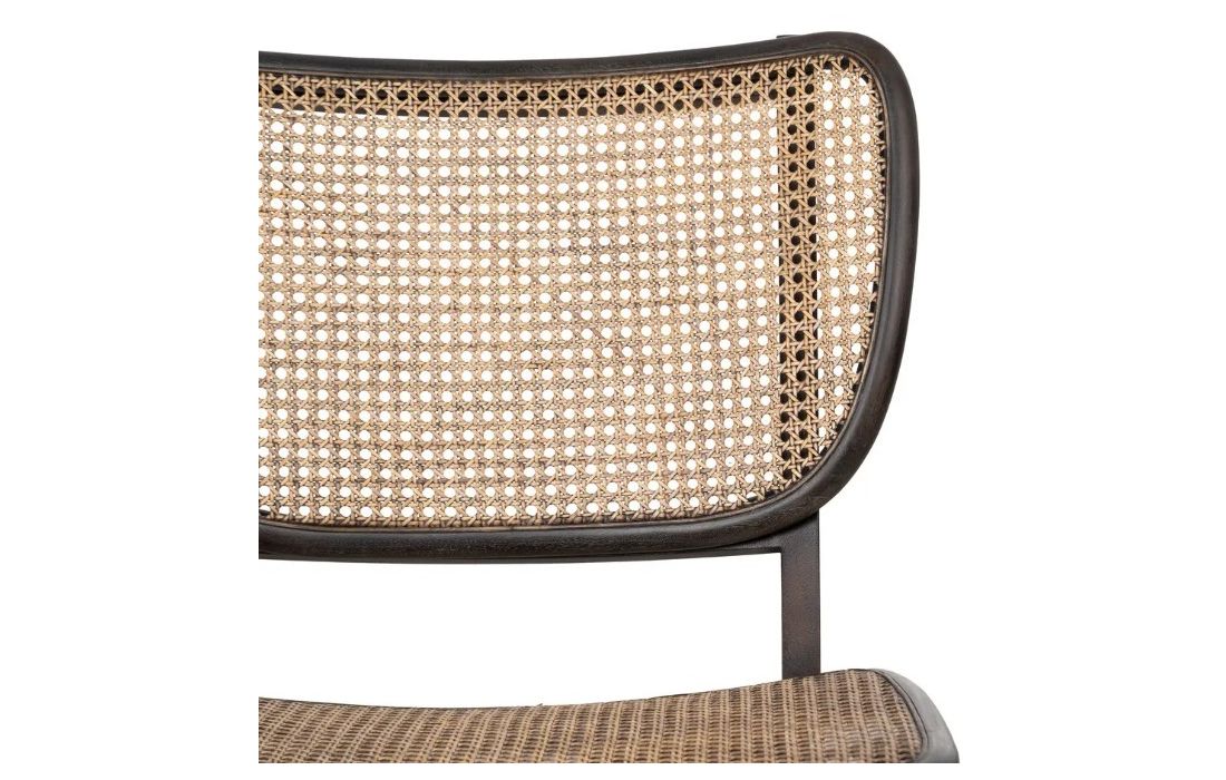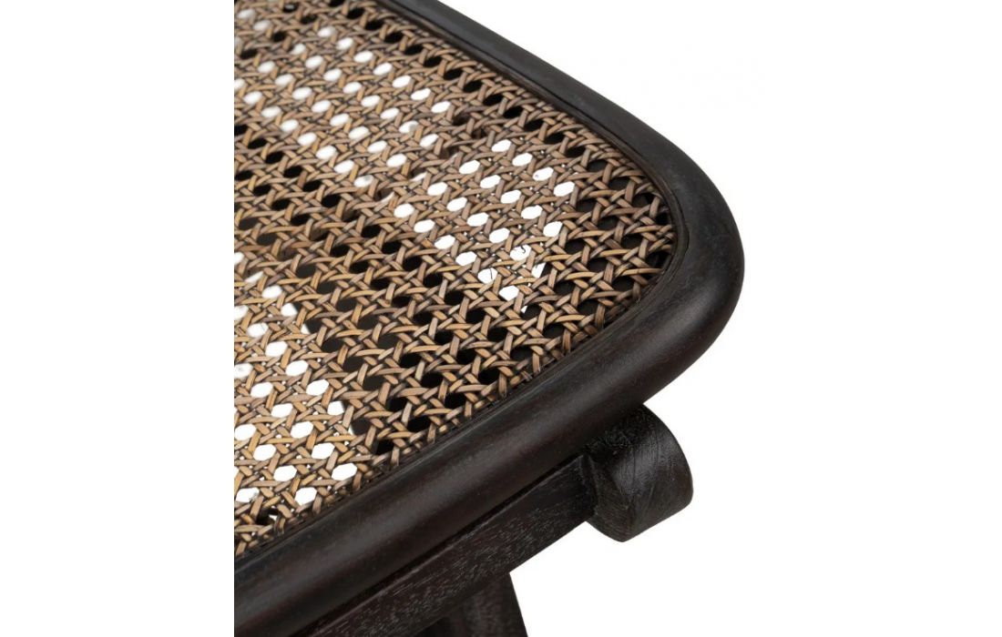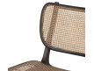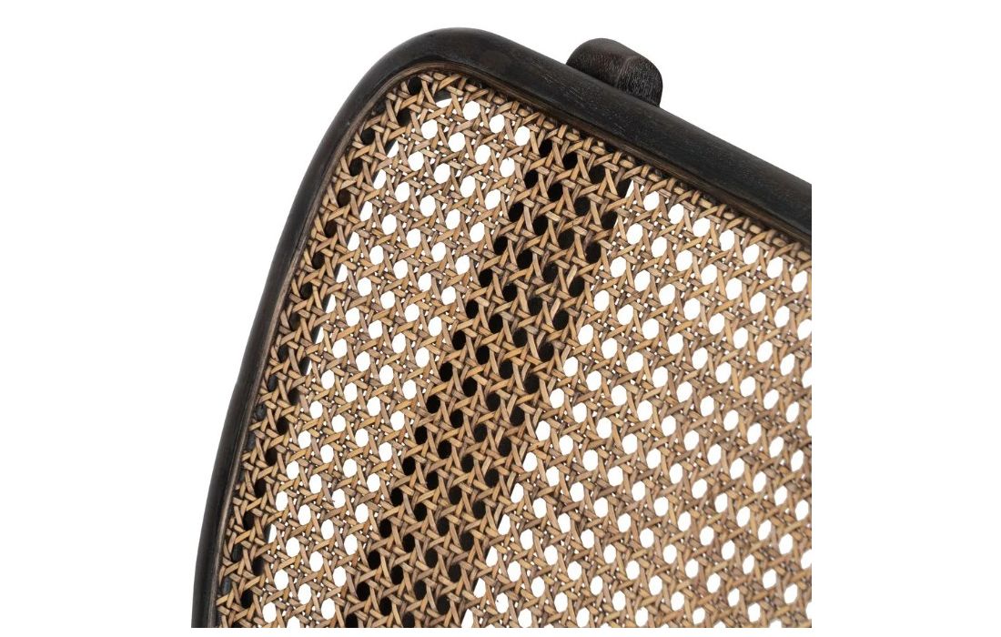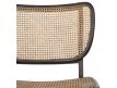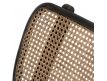 Modern design armchair with mahogany wood structure with rattan seat details.