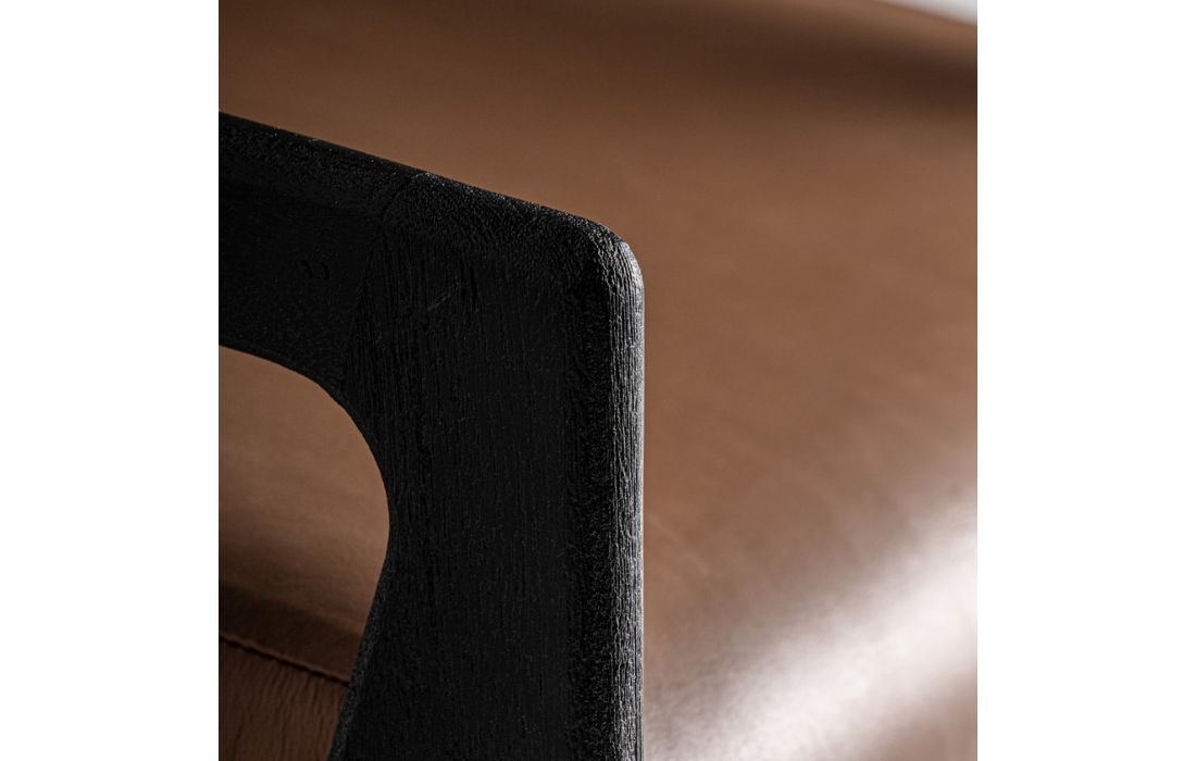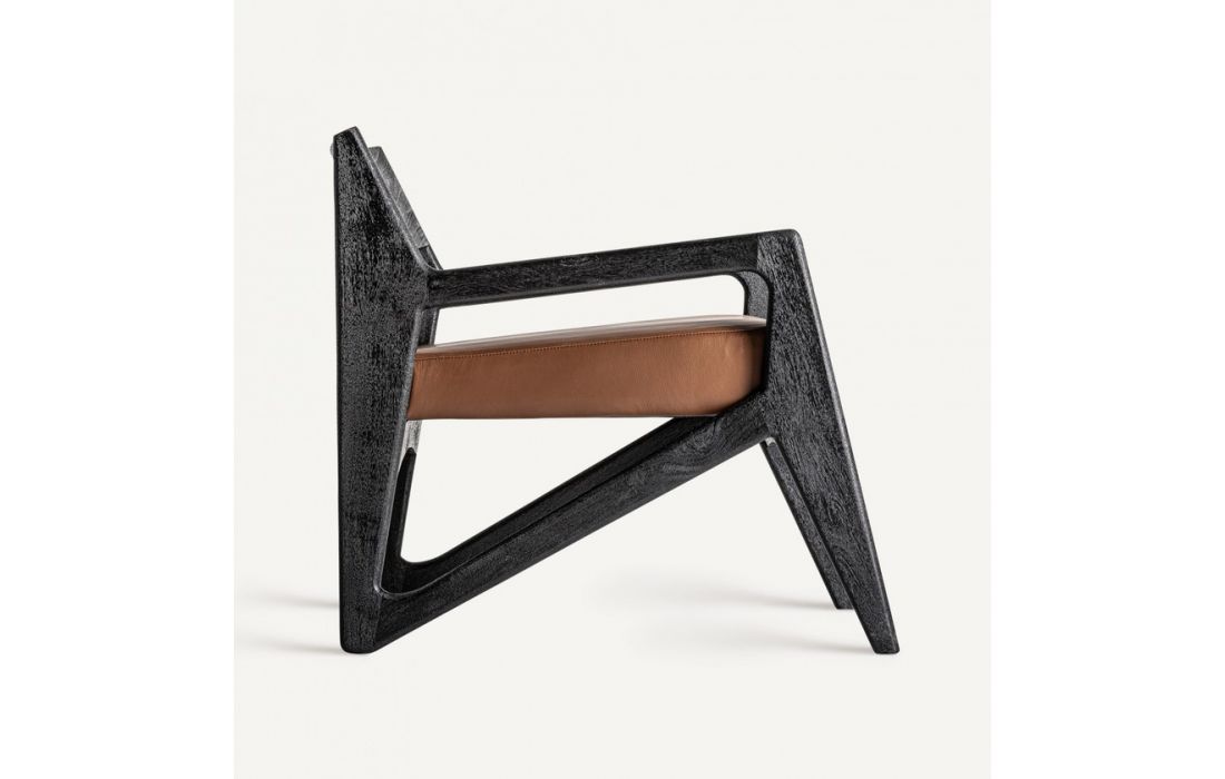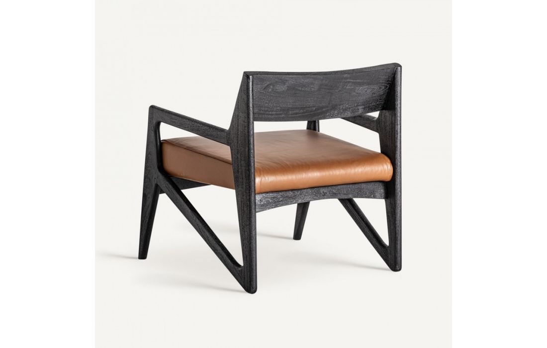 Armchair made of black acacia wood, combined with leather