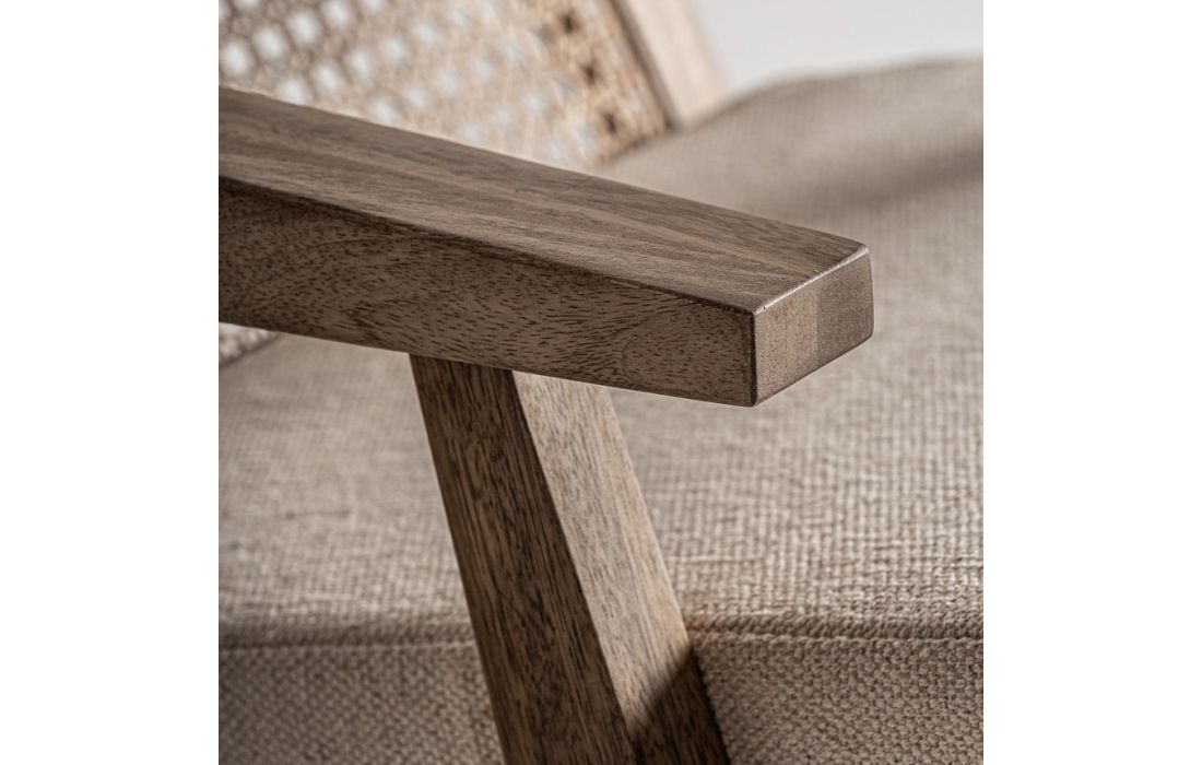 The armchair stands out for its art deco design and combination of materials. Mango wood combines with beige MDF in a wraparound silhouette that provides warmth and styleDelivery time