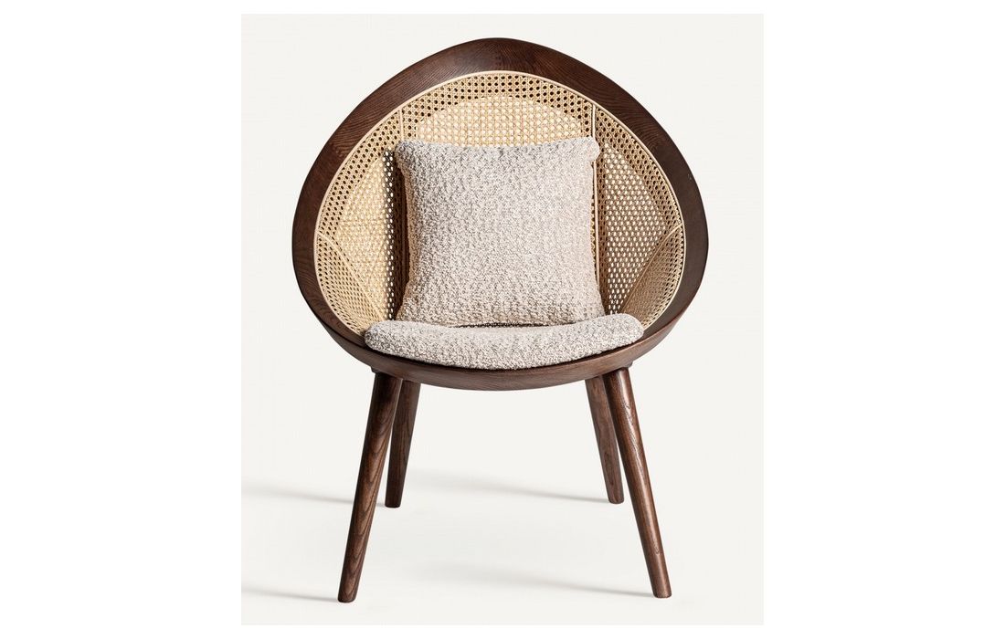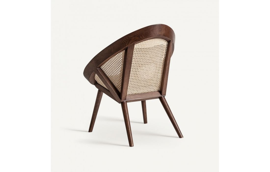 Armchair made of ash wood combined with rattan and fabricDimensions in cm