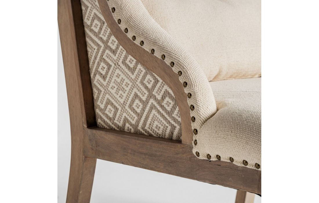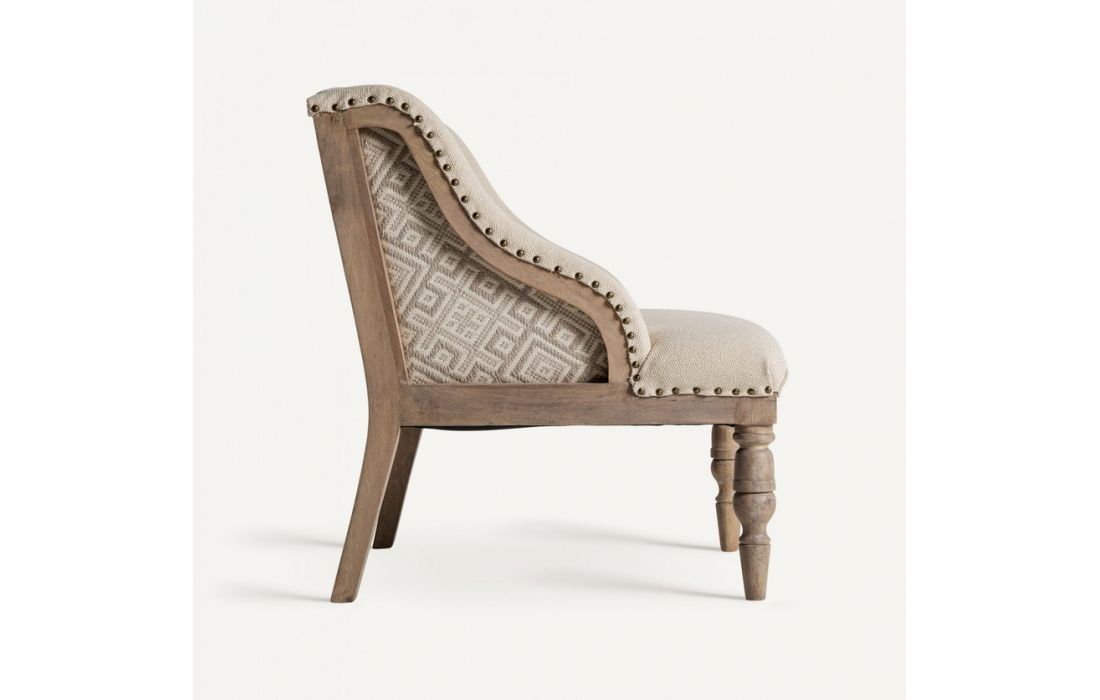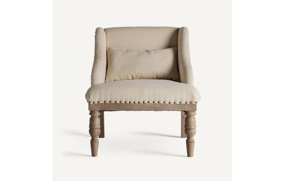 Armchair made of mango wood and beige fabricDimensions in cm