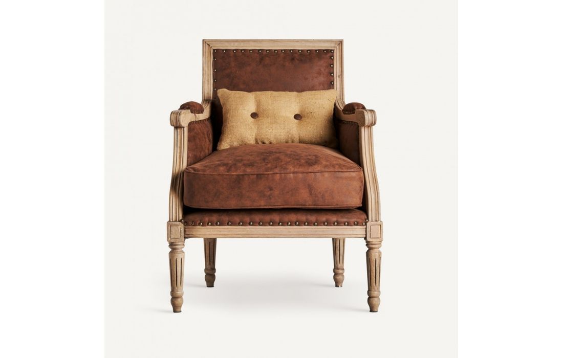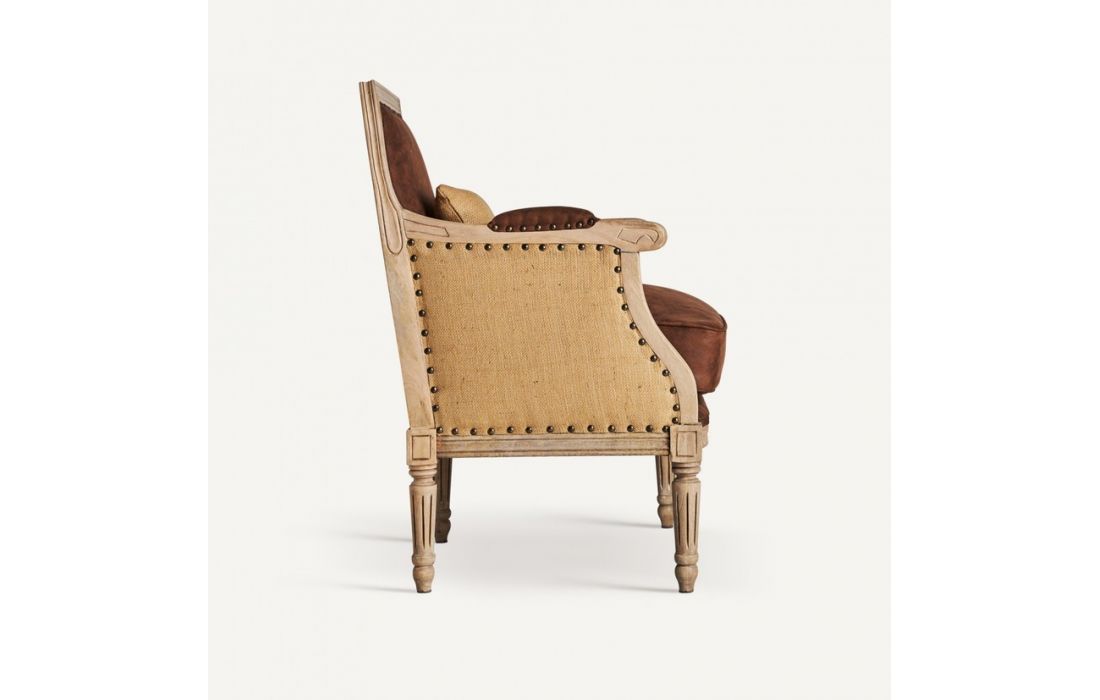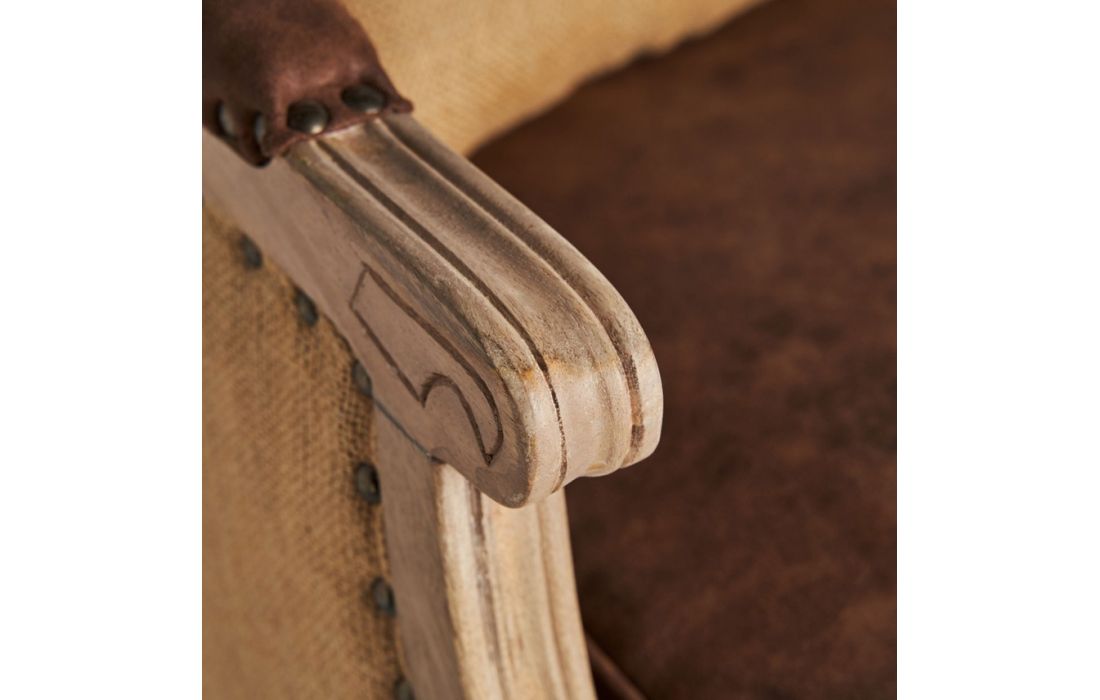 Armchair made of mango wood combined with fabricDimensions in cm