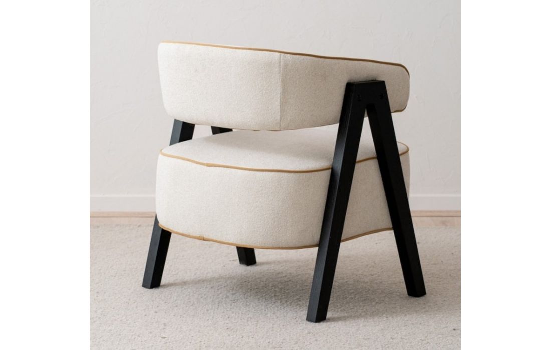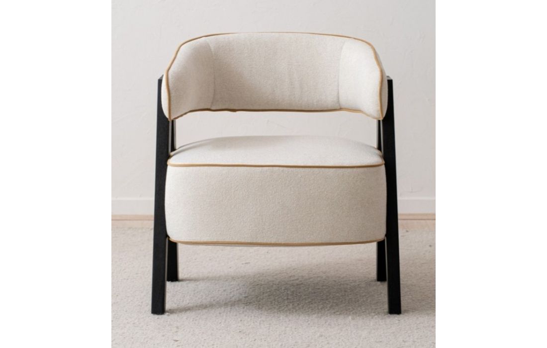 Contemporary style armchair in textured fabric and ash woodRecipient :
