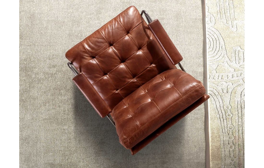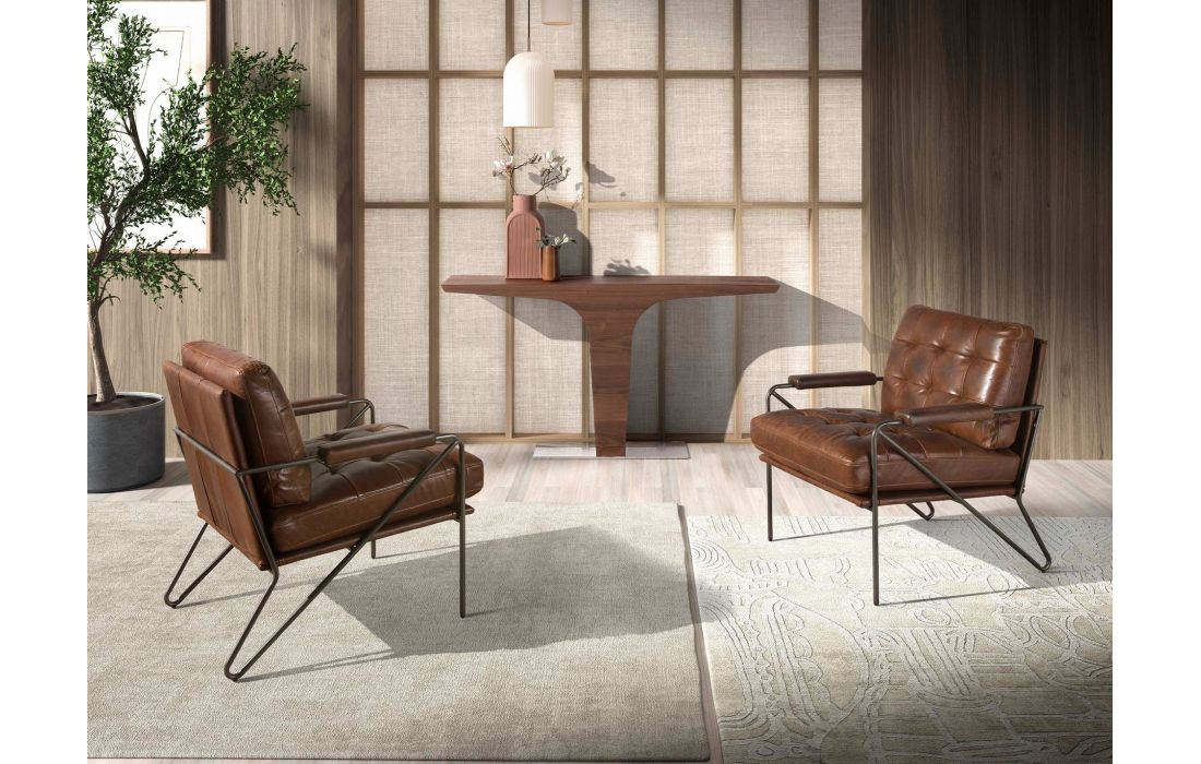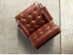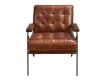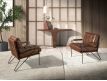 Modern design armchair with armrests, seat and back upholstered in leather and legs in darkened stainless steelRecipient :