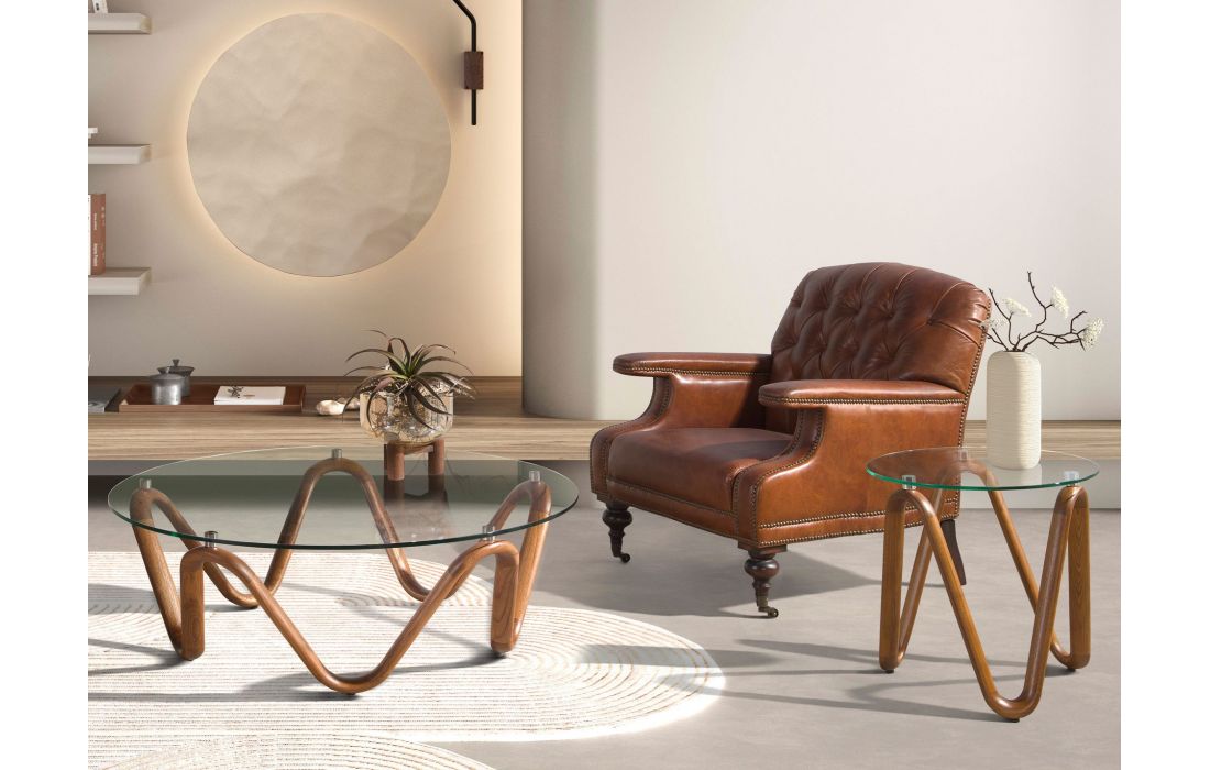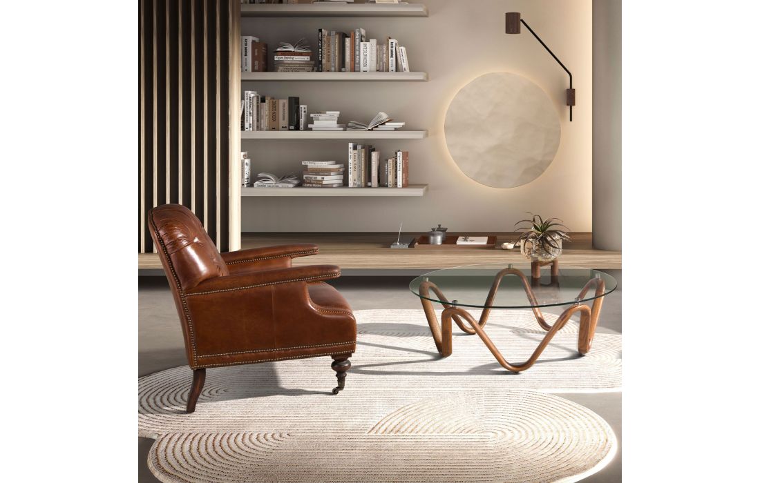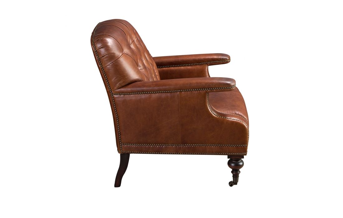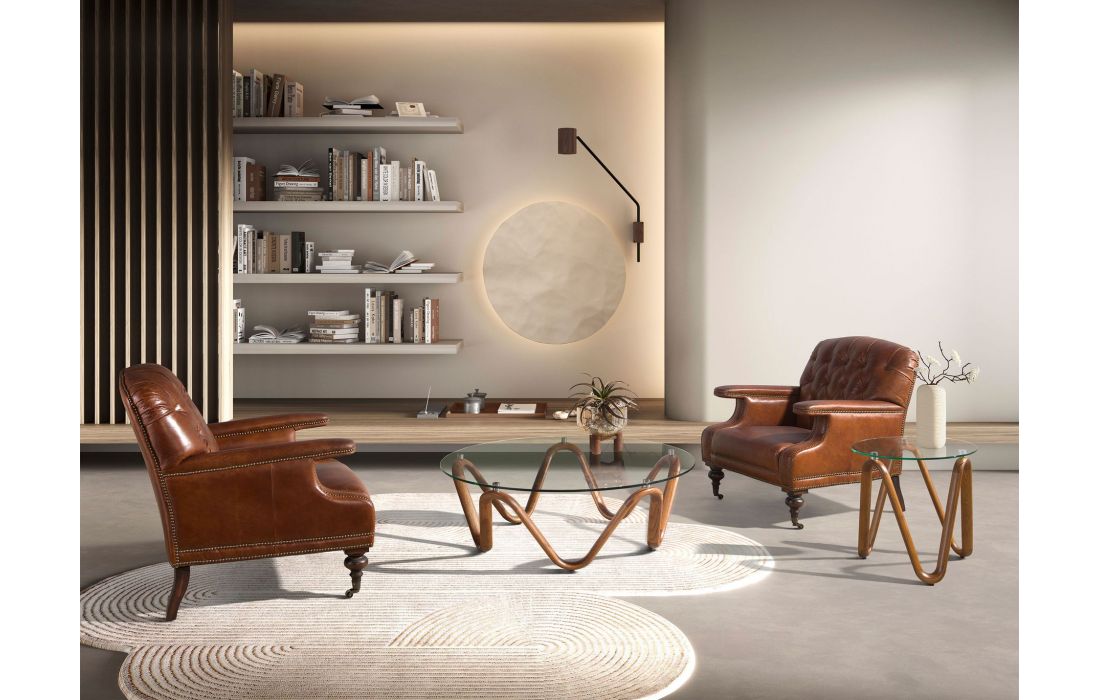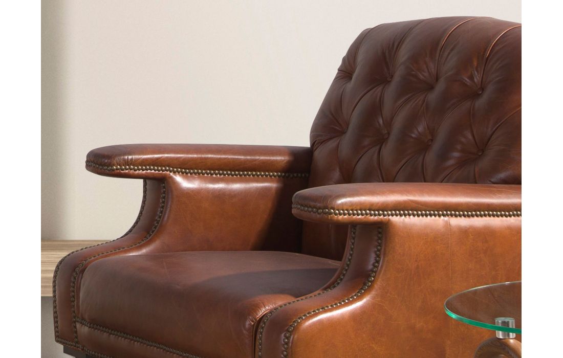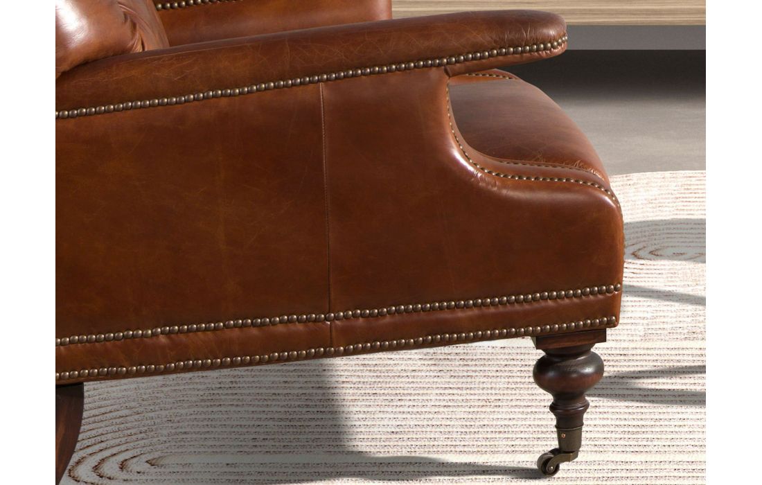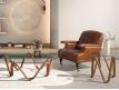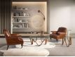 Modern design armchair with armrests, seat and back upholstered in leather and solid wood legsRecipient :