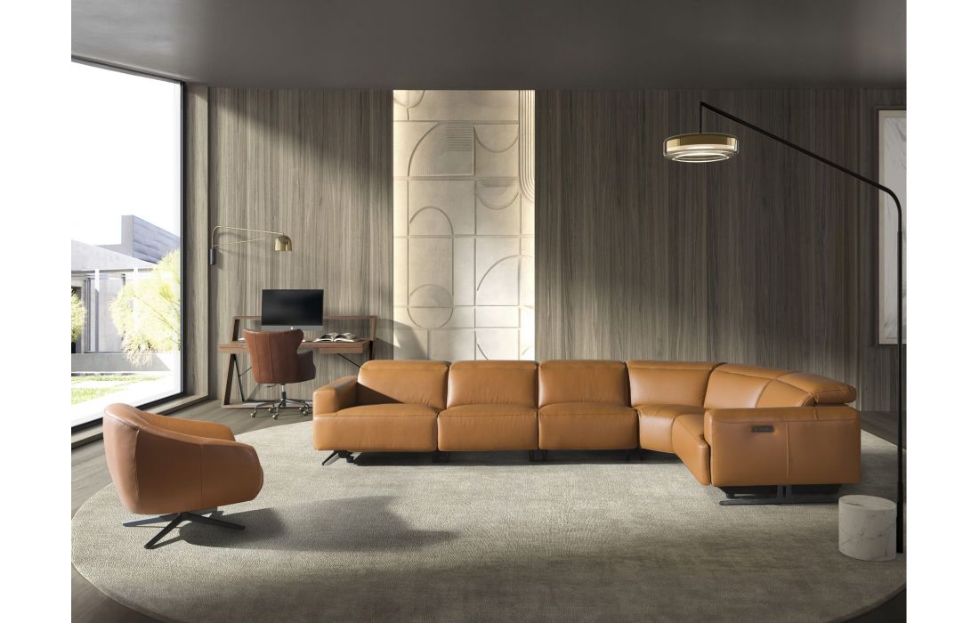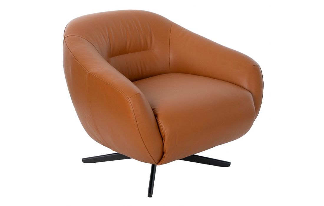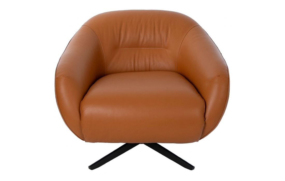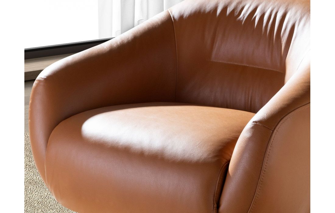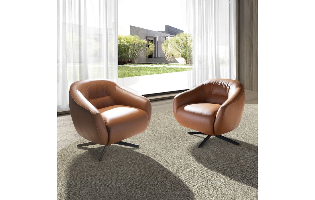 Modern design swivel armchair with seat and back upholstered in leather and its style as per its stainless steel legsRecipient :