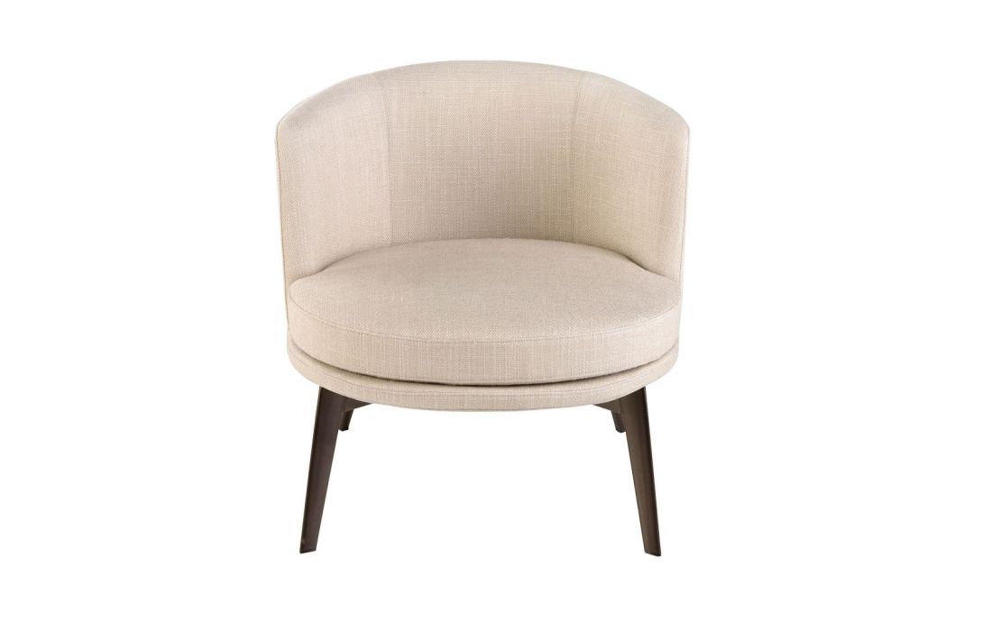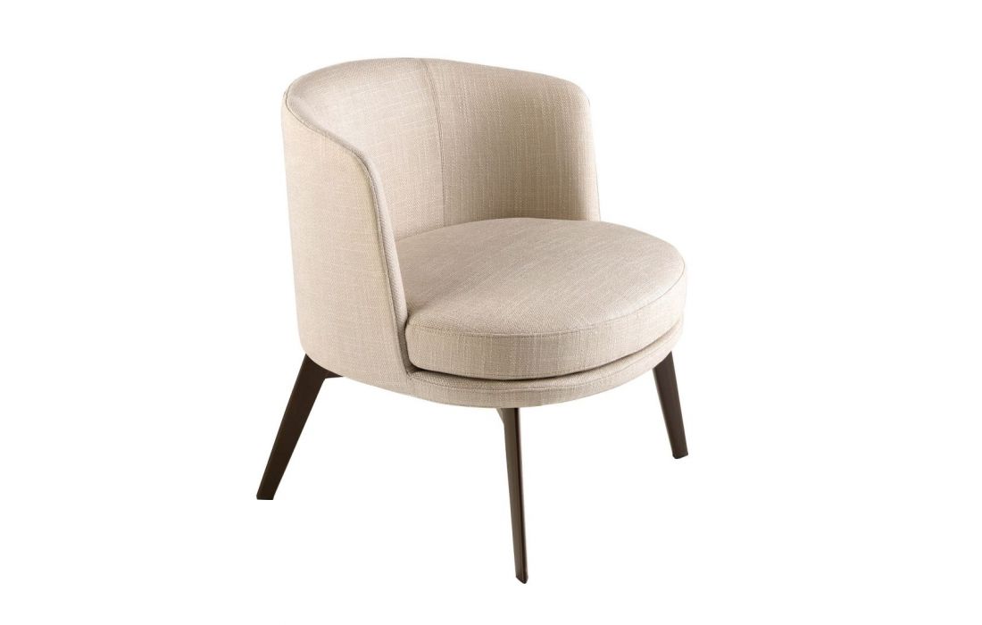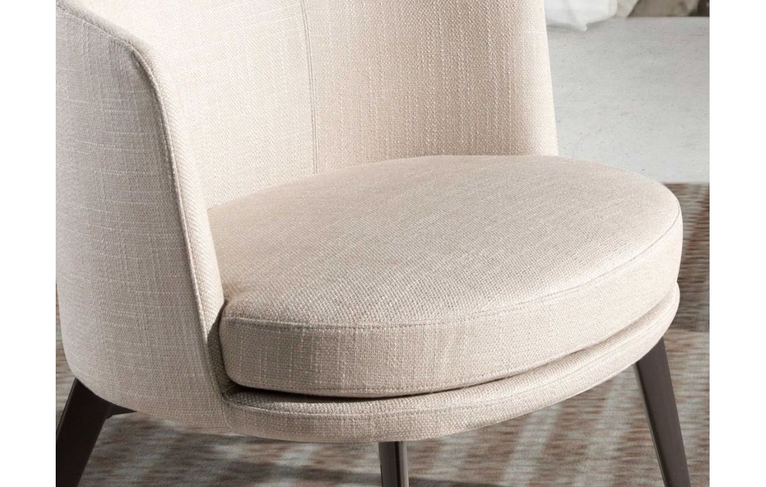 Modern design armchair with seat and back upholstered in fabric and stainless steel legsRecipient :