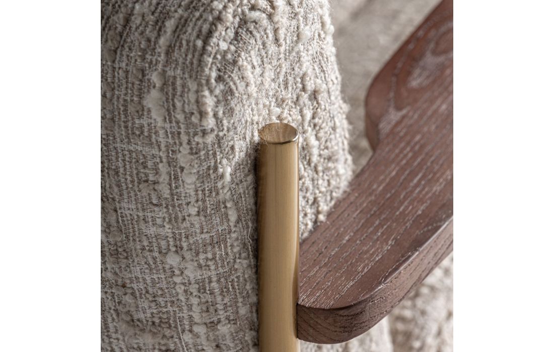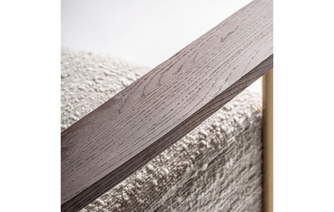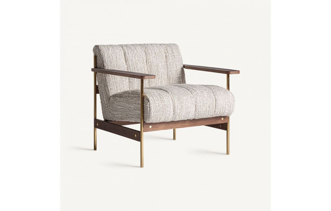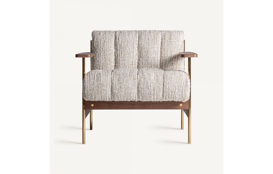 The armchair stands out for its polyester upholstery and pine wood structure with steel details, with its enveloping silhouette and textured finish making it a sophisticated and cozy pieceRecipient :