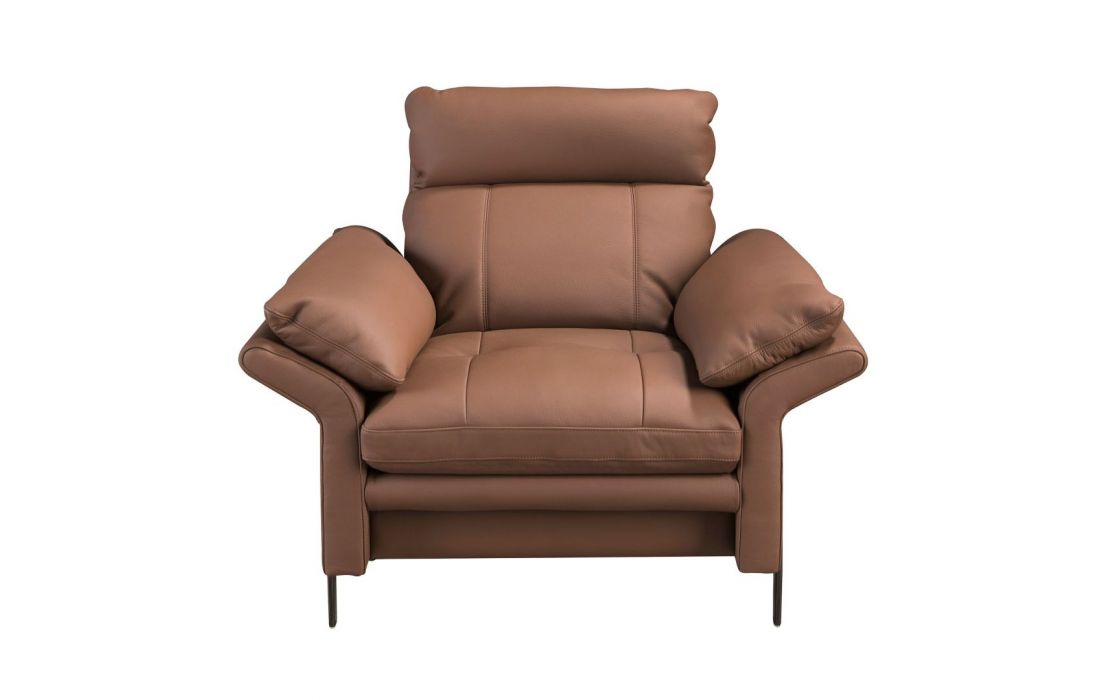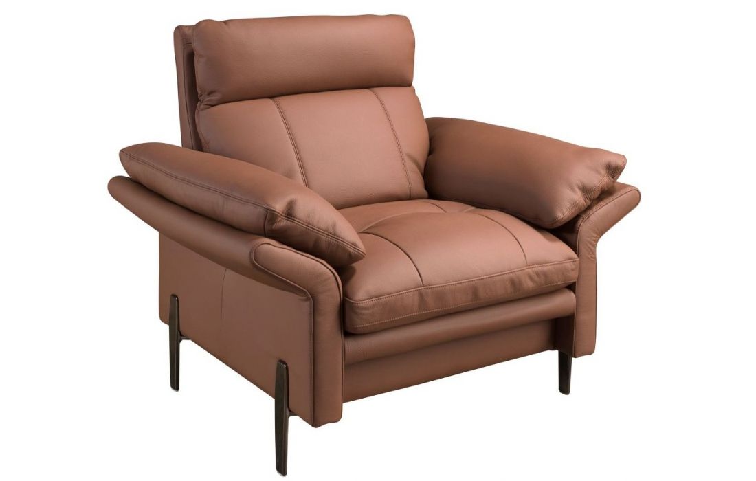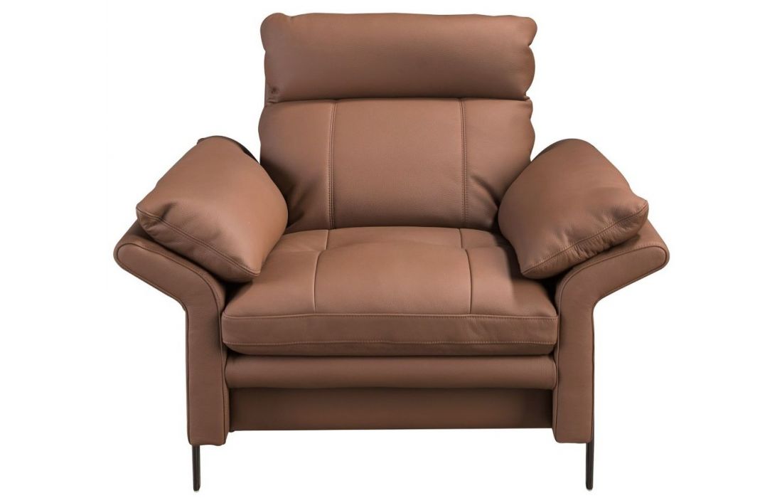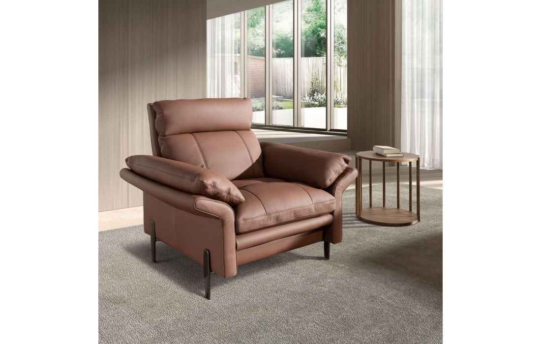 Modern armchair with arms and seat and back upholstered in cowhide and legs in chromed stainless steel, this armchair is the perfect combination of design and comfortRecipient :