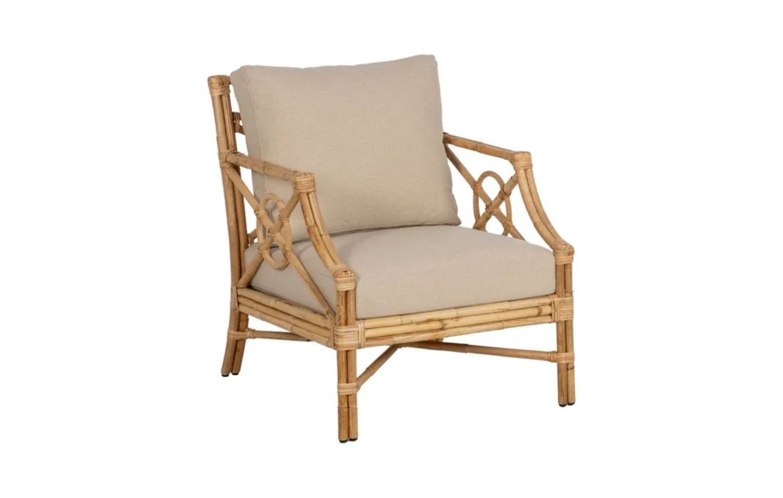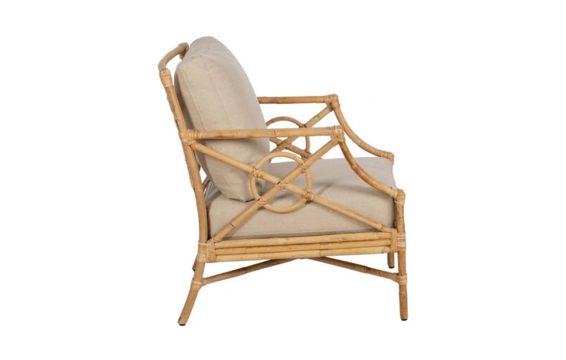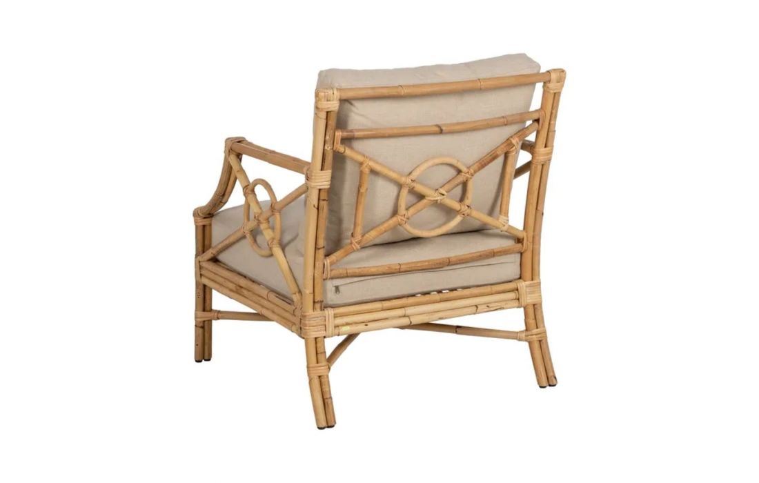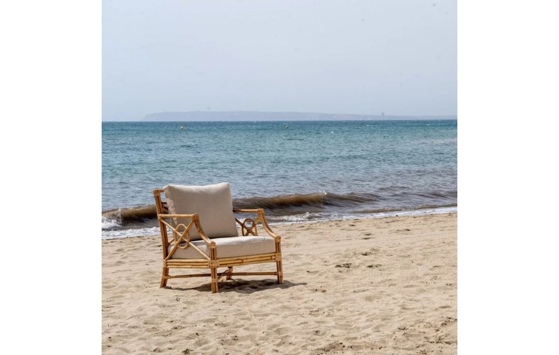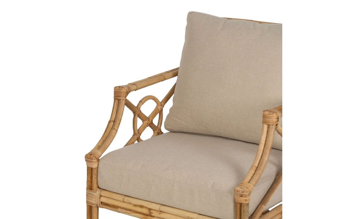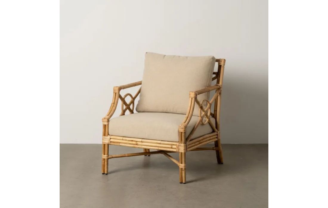 Armchair made of rattan and its seat upholstered in fabricRecipient :