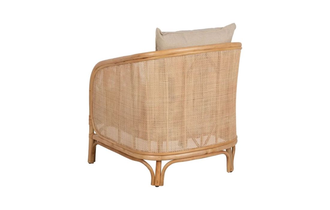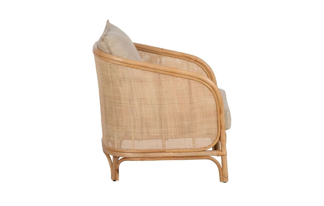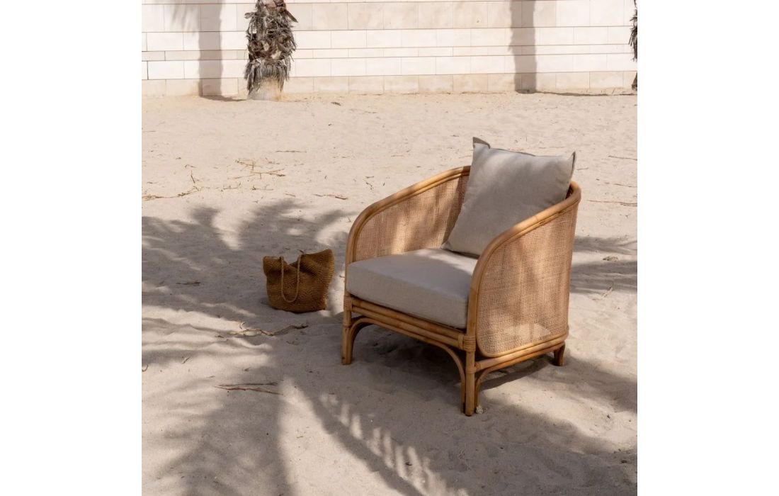 Armchair made of straw and its seat upholstered in fabricRecipient :