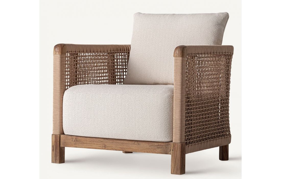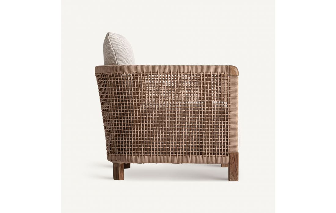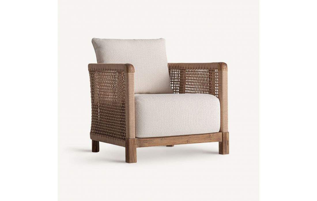 A piece that conveys the essence of eternal summer. The TREM armchair, with a recycled teak frame. Comfortable and characterful, it's perfect for stylish terraces.