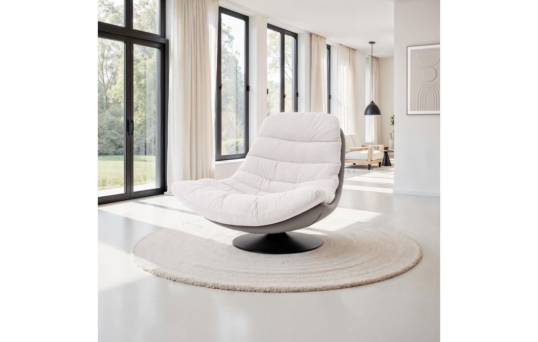 This 360° swivel armchair is a comfortable and versatile piece that stands out for its modern and elegant design. The fabric is stain-resistant and scratch-resistant, especially for pets, offering practicality and durability.