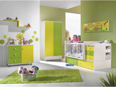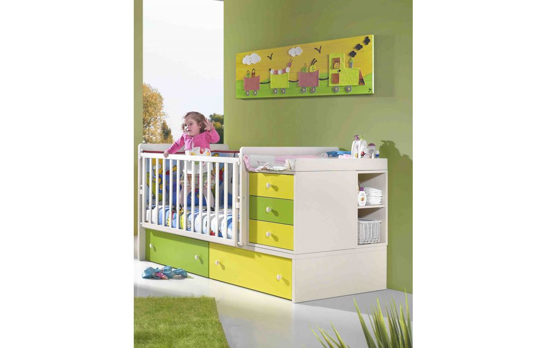 | The crib becomes a bed w / mattress 90 x 190 + bedside table (1) + desk | ||||||||