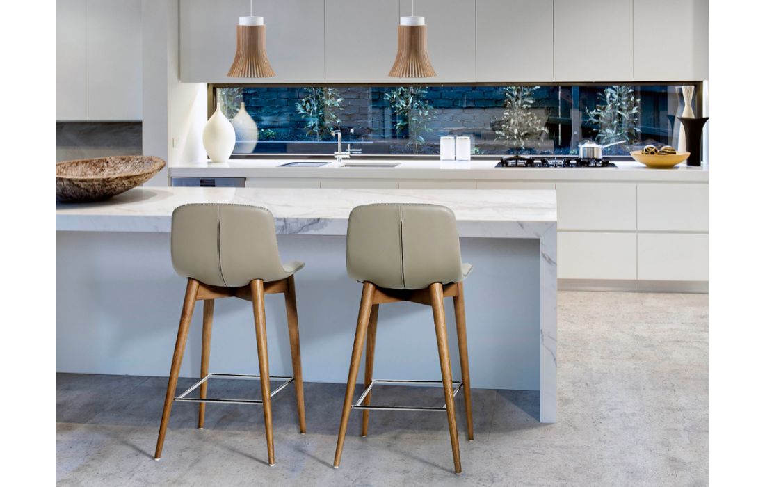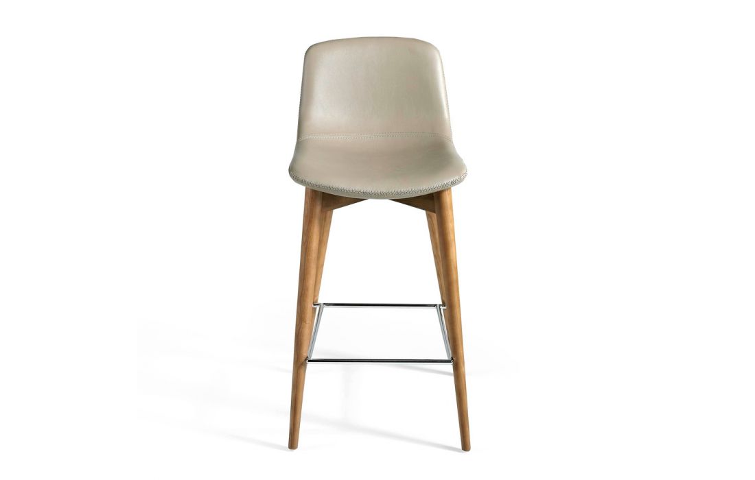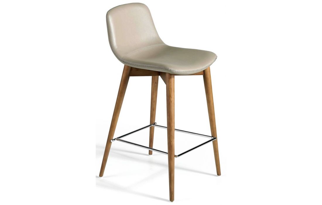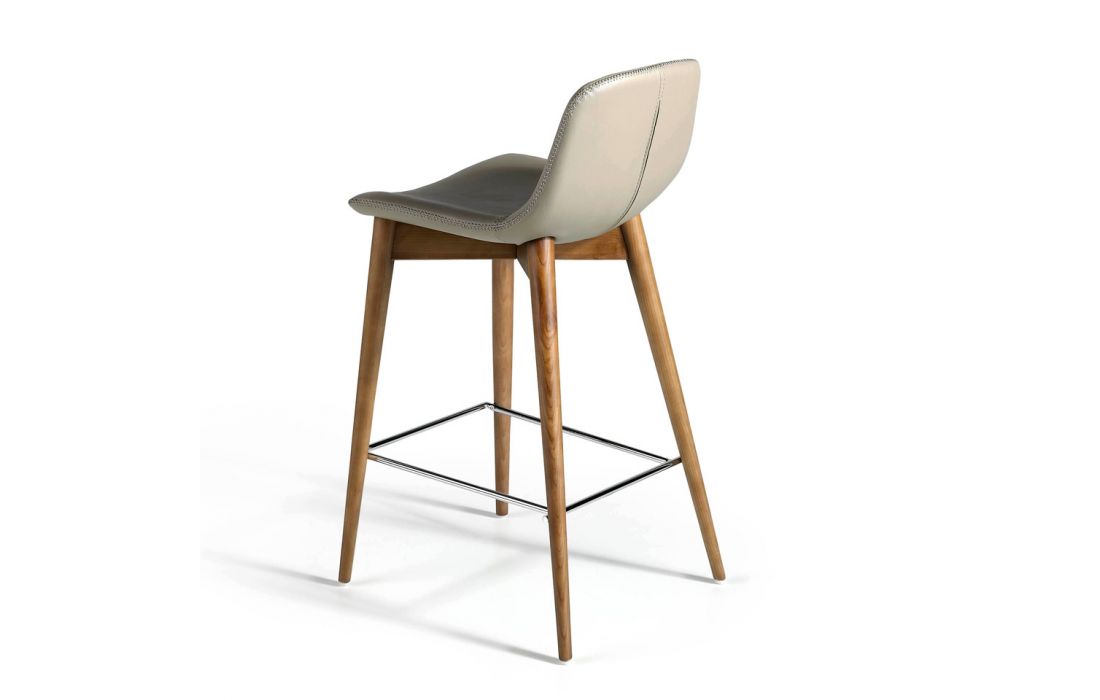 Modern design high stool with seat and economical upholstery in synthetic leather with stainless steel details, as well as walnut wood legsRecipient :