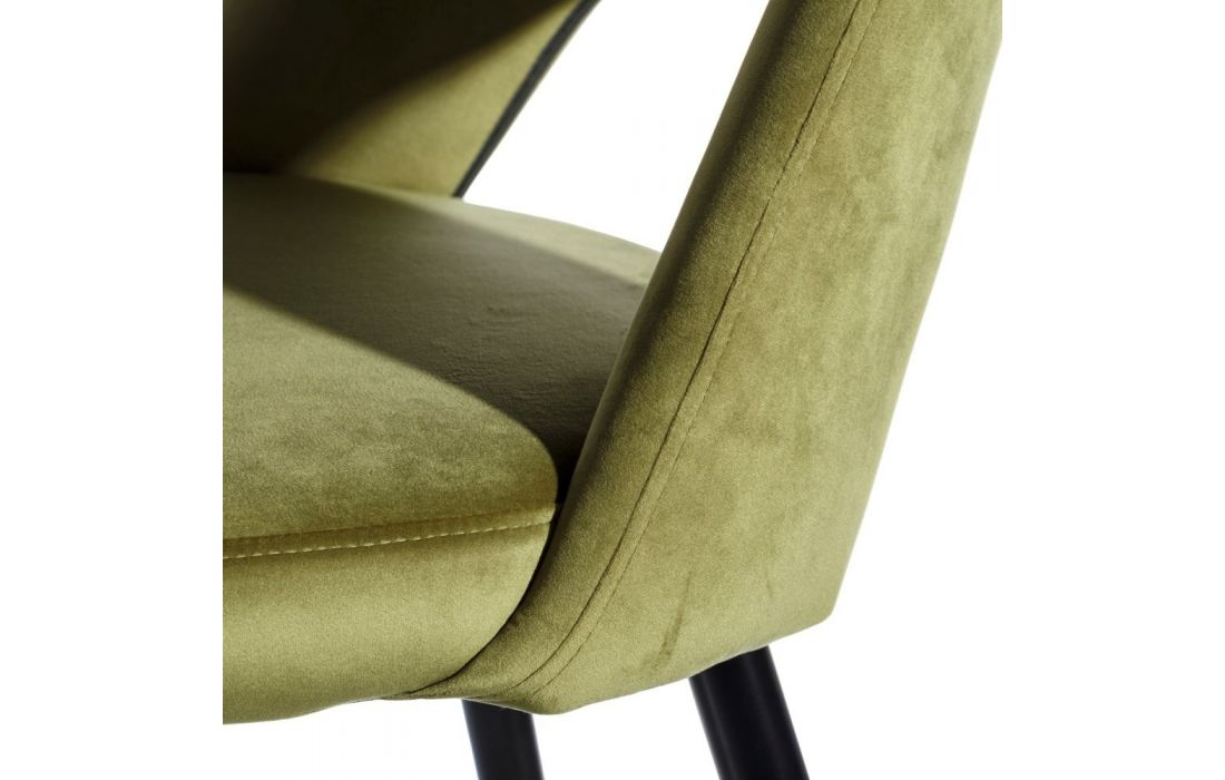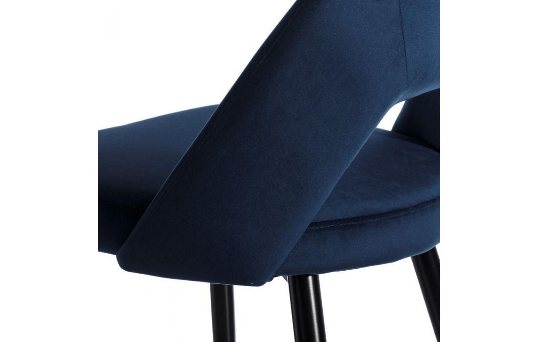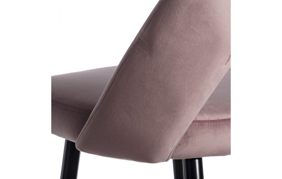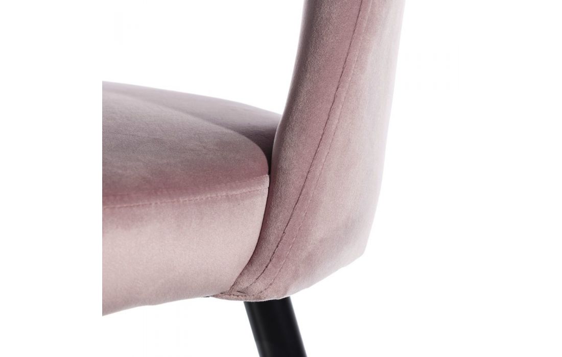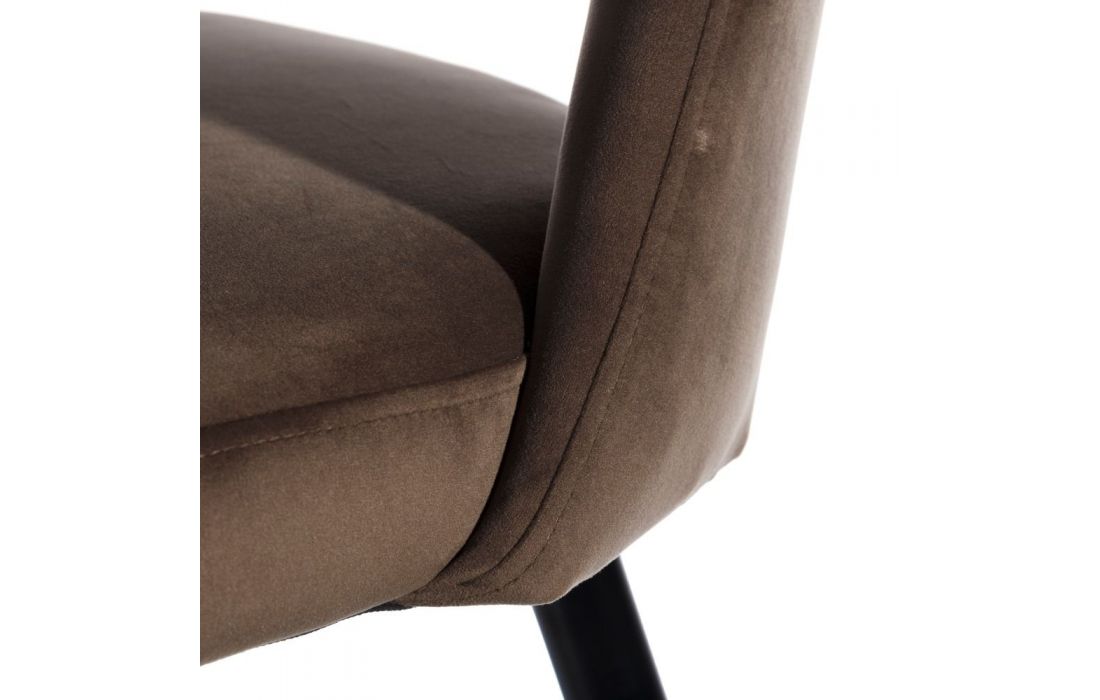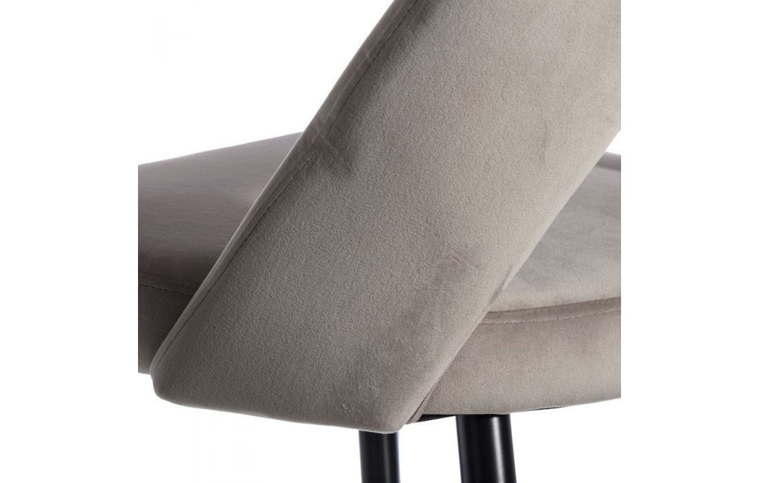 Bar stool with upholstery in fabric with 5 colors available, grey, blue, green, pink and brown, with black steel feet.