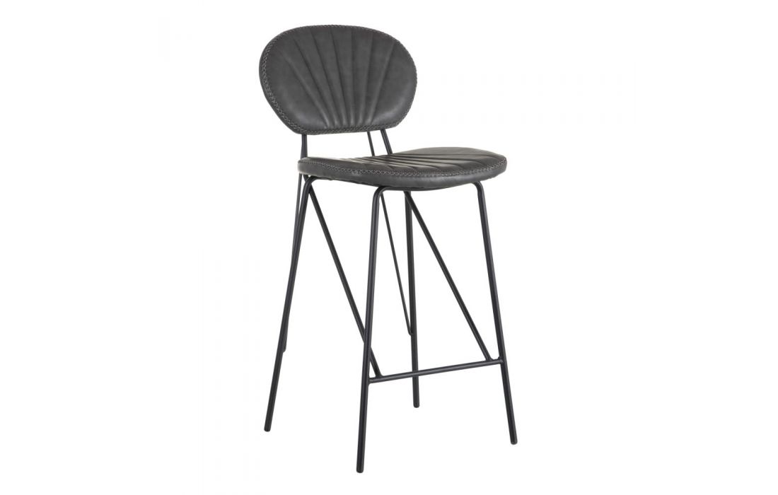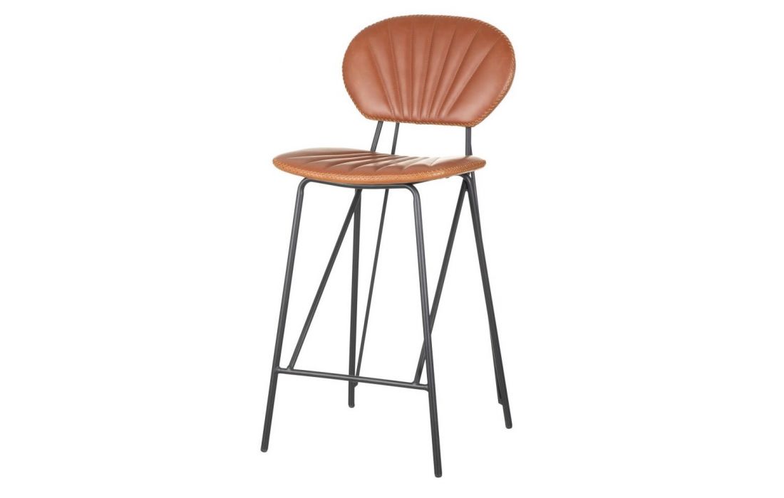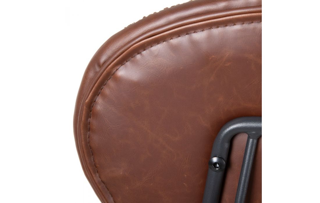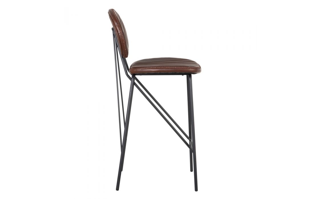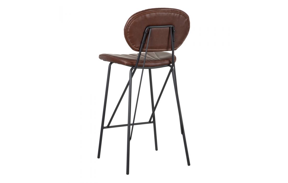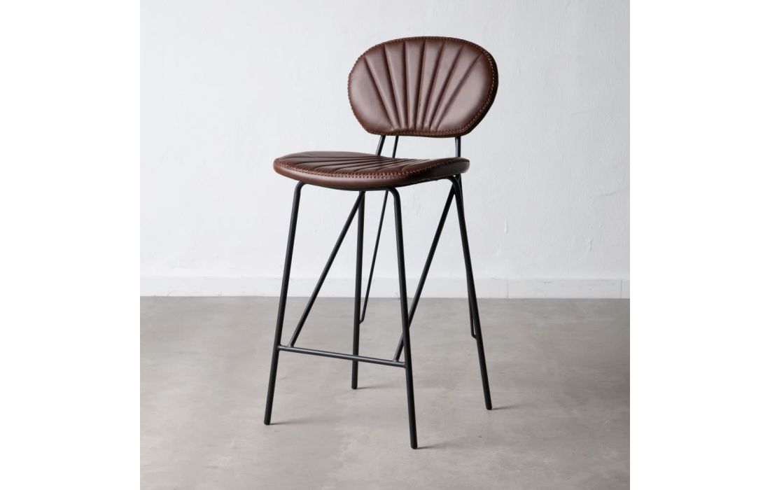 Bar stool with upholstered in synthetic leather with 3 colors available brown, dark brown and dark gray with metal feet in black.