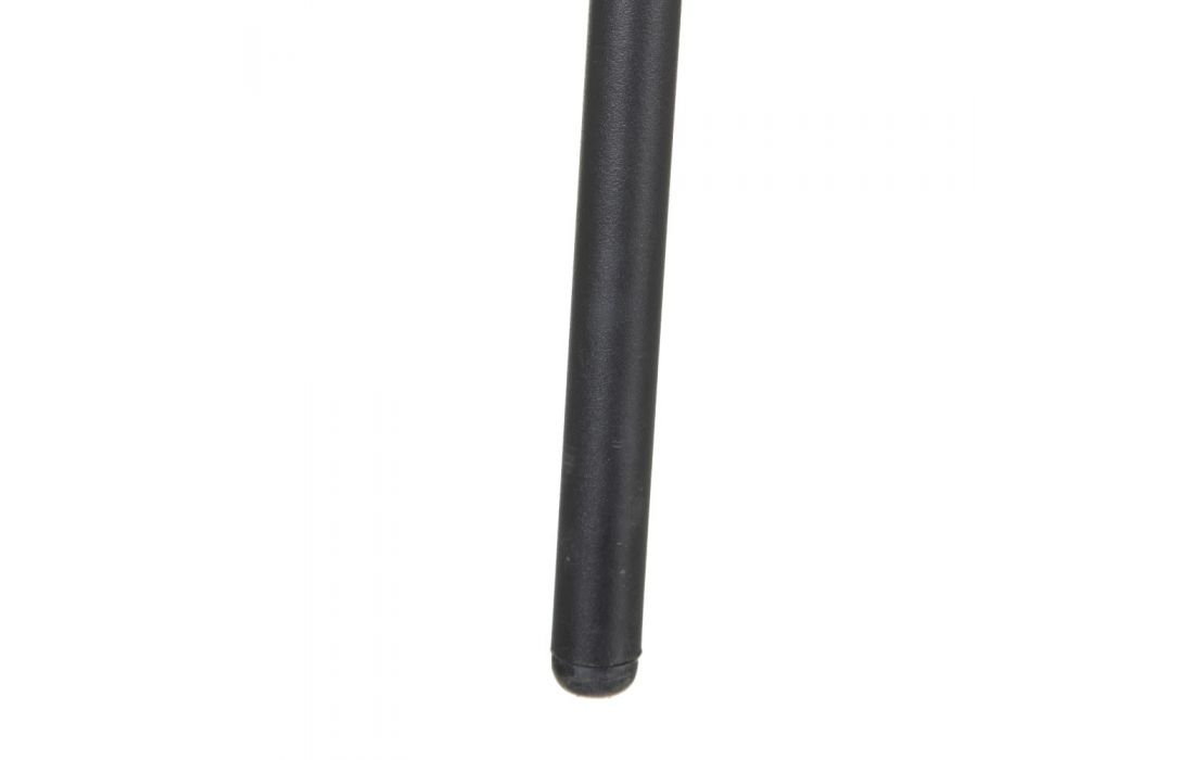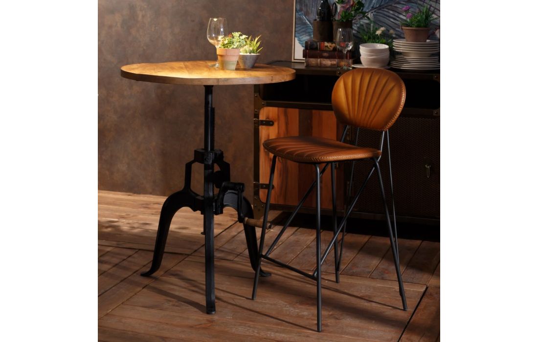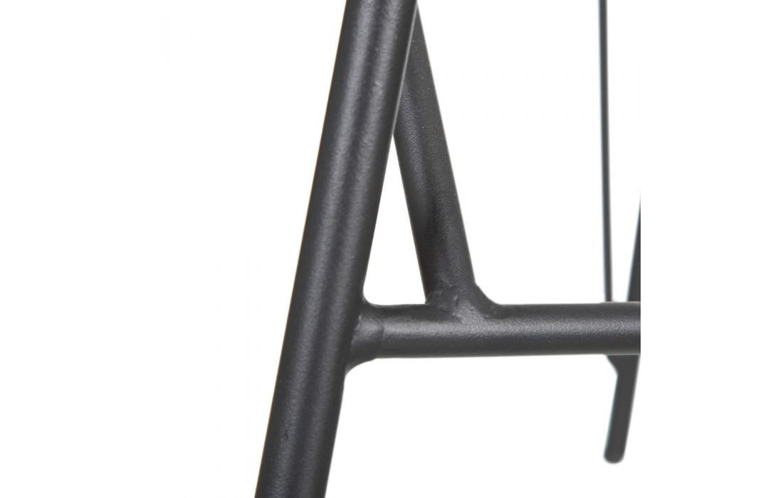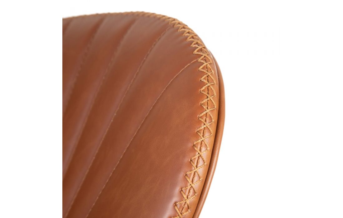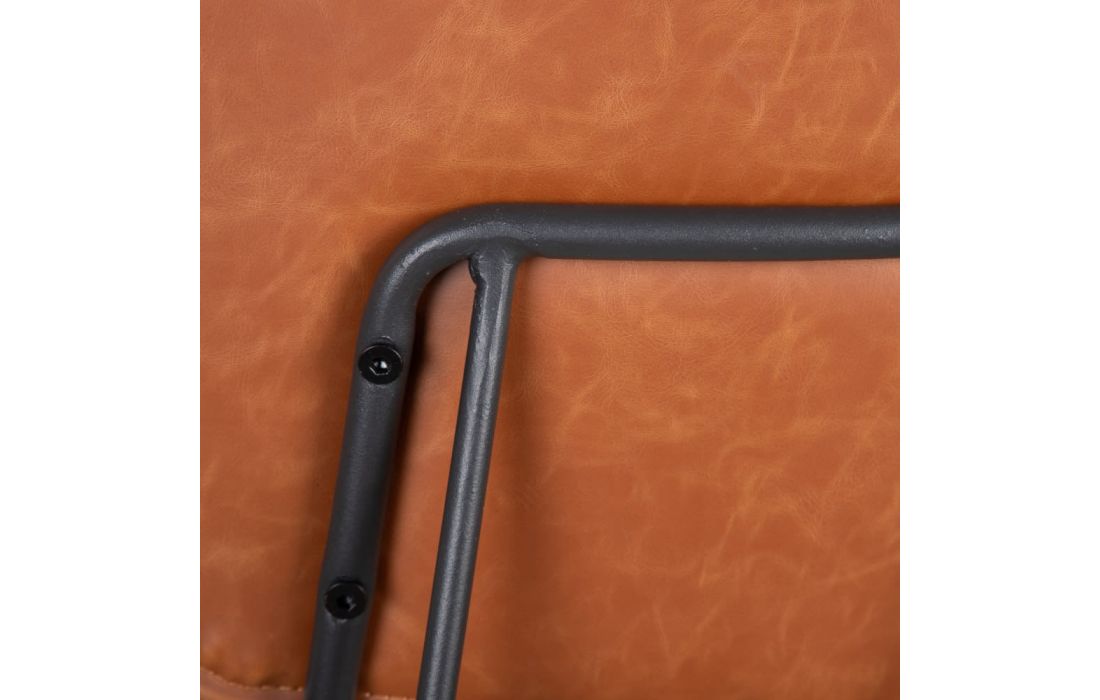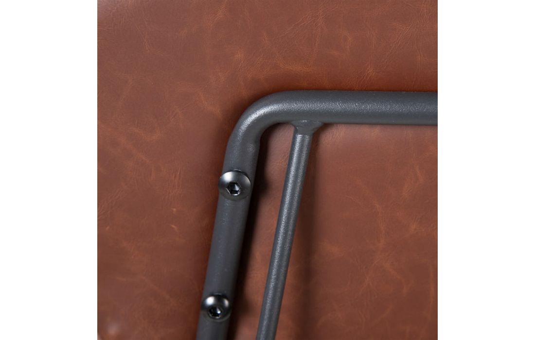 Bar stool with upholstered in synthetic leather with 3 colors available brown, dark brown and dark gray with metal feet in black.