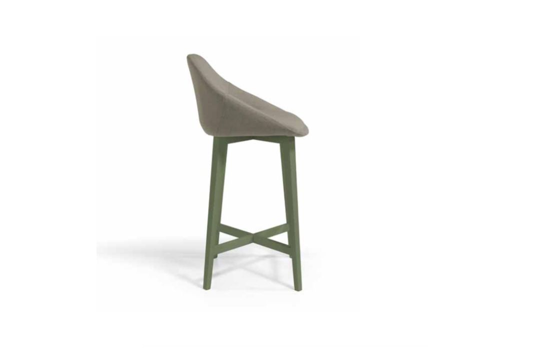 Fabric stool bar with wooden legs.