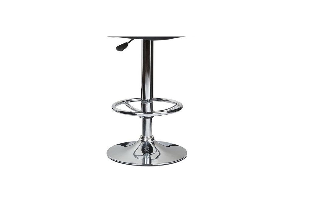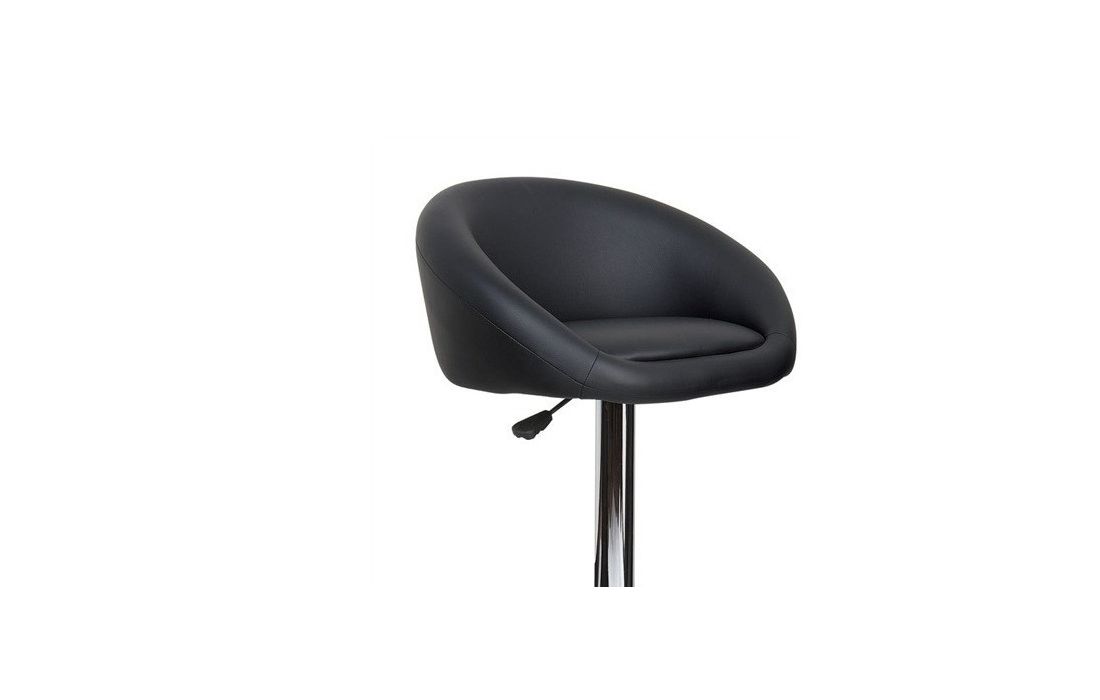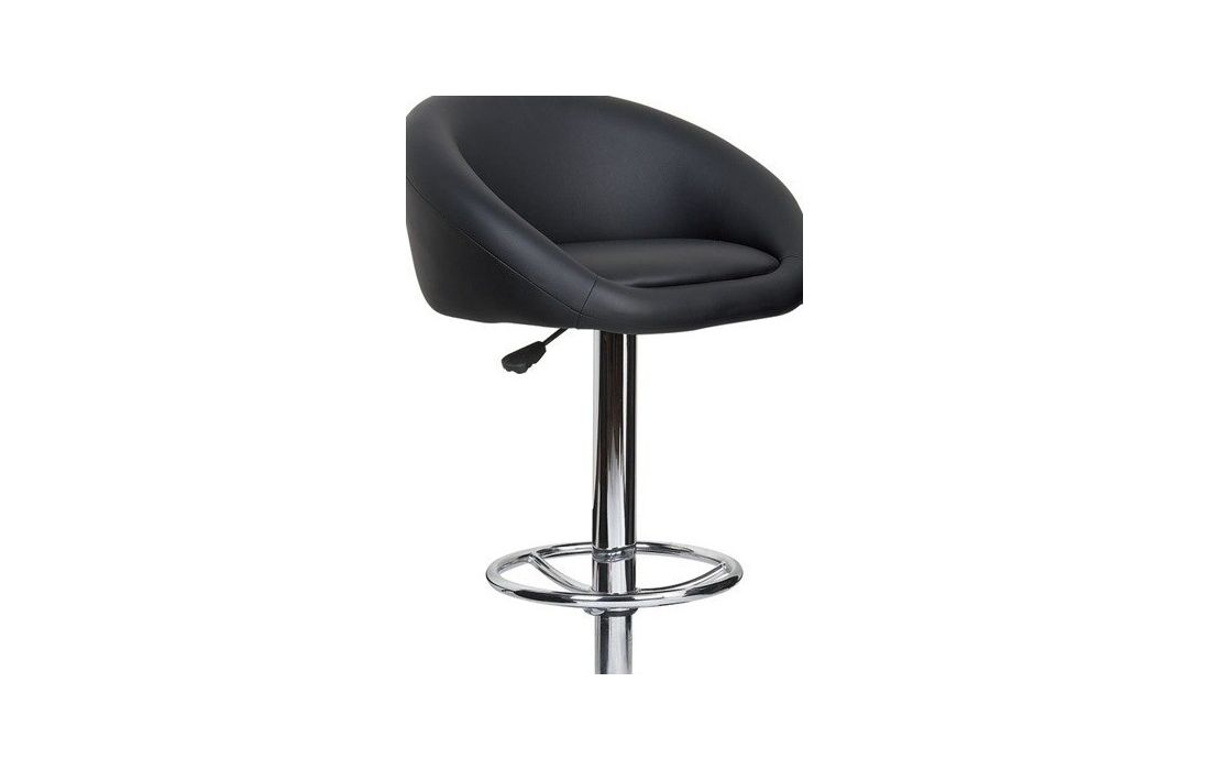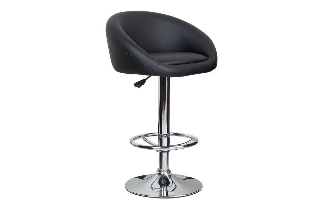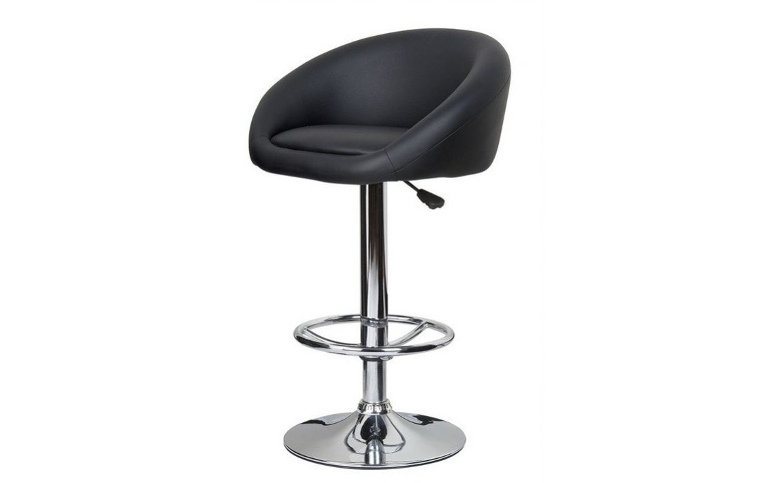 Bar stool with chromed steel structure, height adjustment by elevation system and upholstered seat in black synthetic leather