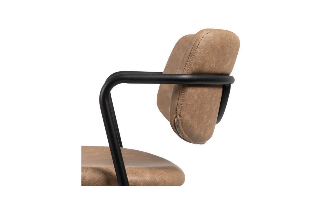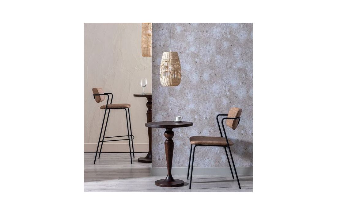 Delivery time: 30 to 45 daysBarStool in solid oak wood with upholstered in light brown or black synthetic leather and legs with metal detail and covers