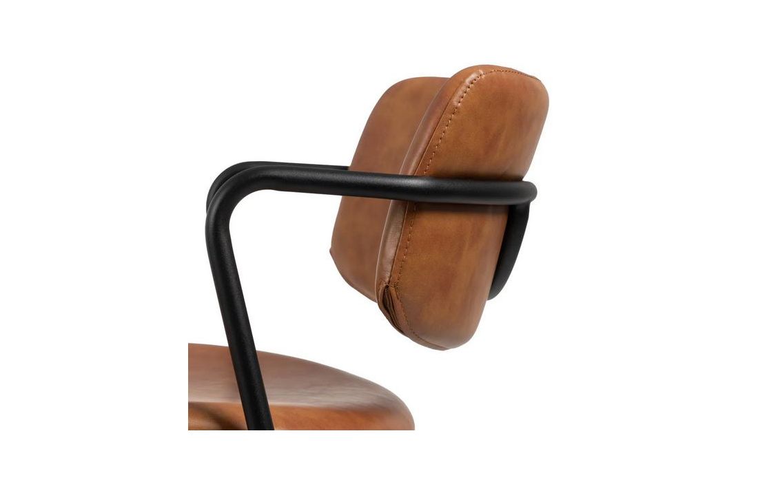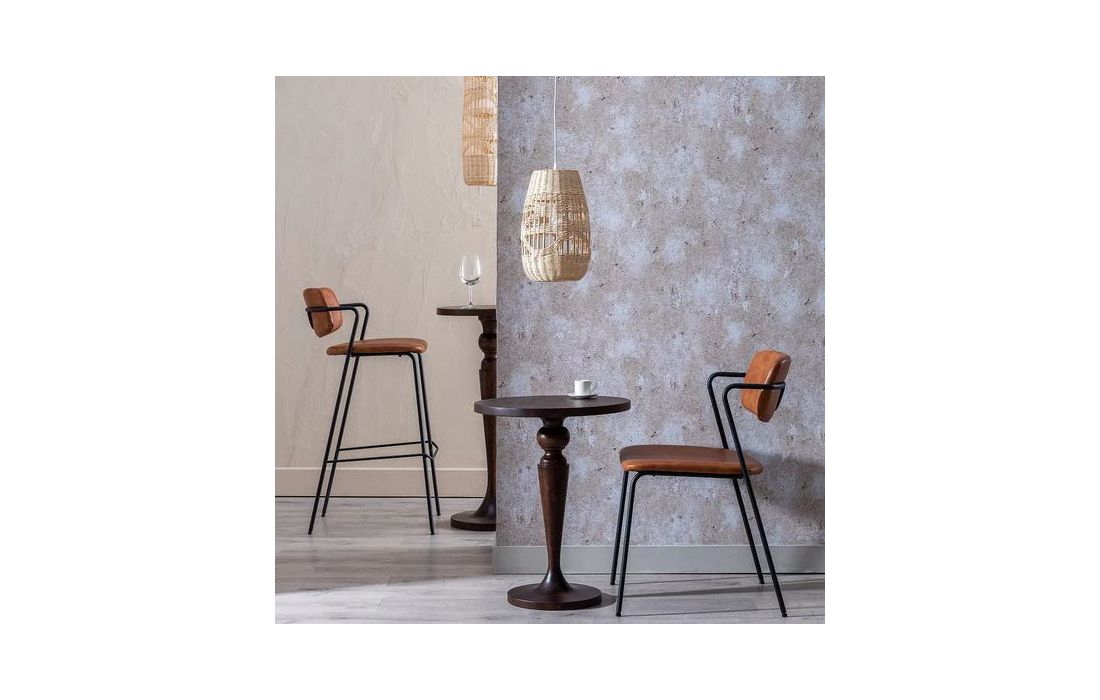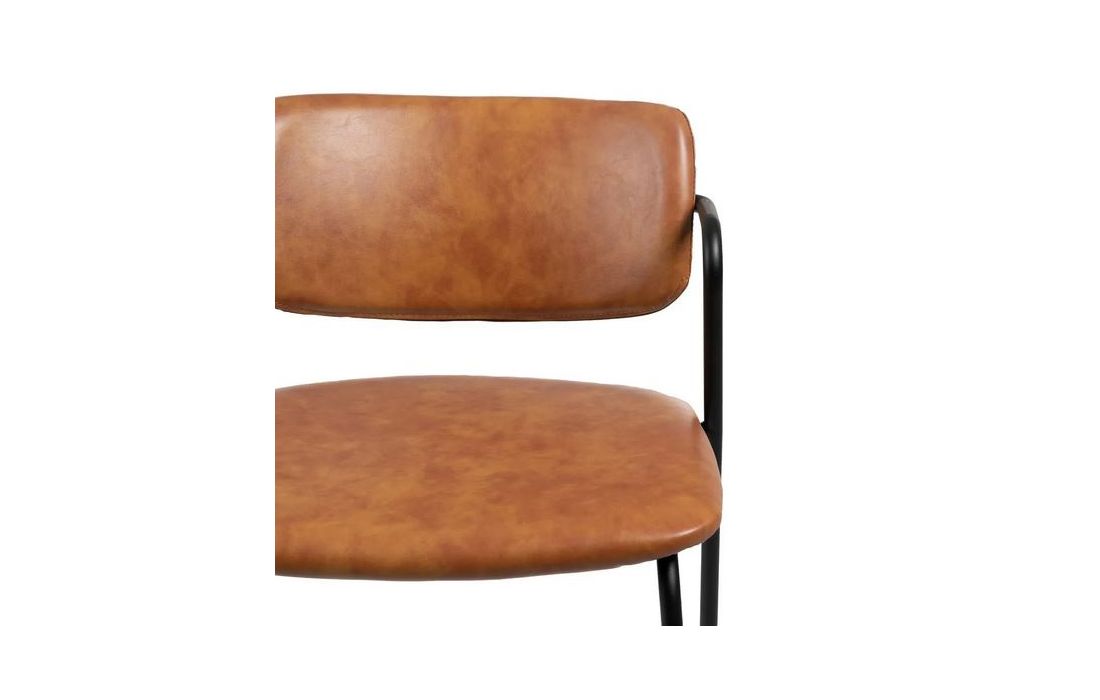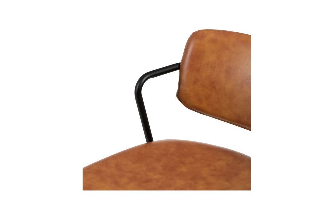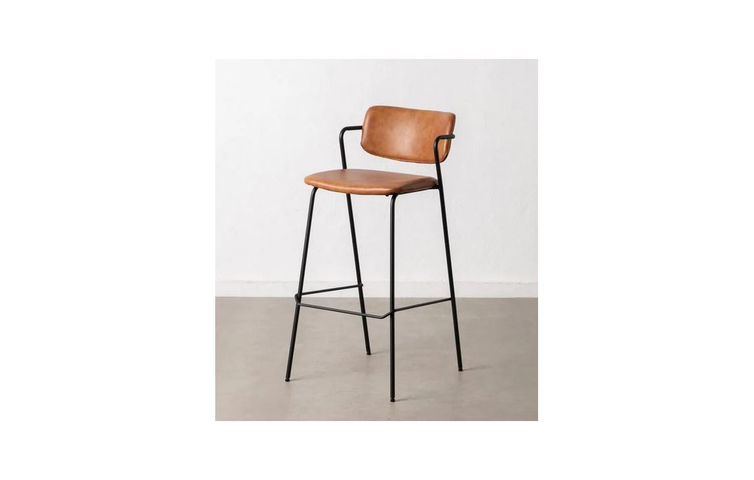 Bar stool with metal structure, upholstered in light brown synthetic leather