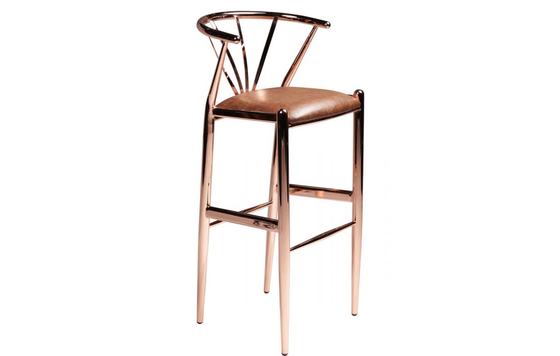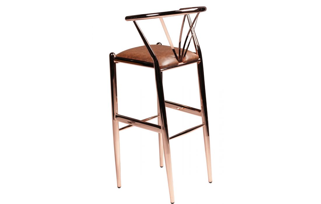 Barstool with structure in metal covers and padding in synthetic brown leather