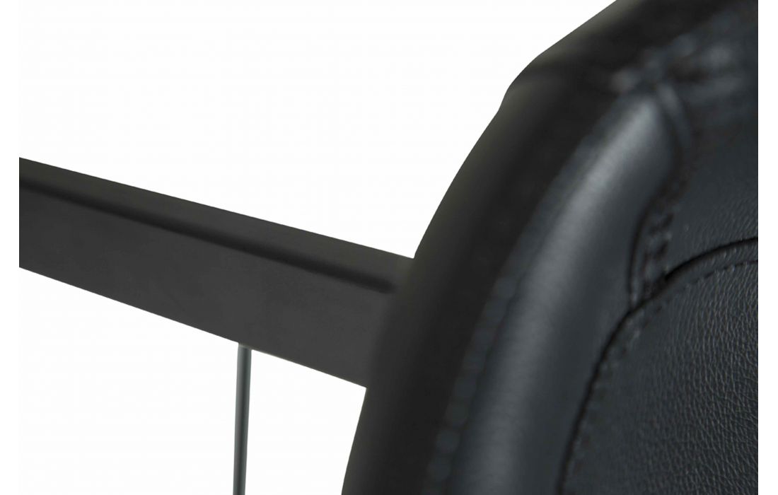 Barstool with upholstered in black synthetic leather, brown, vintage green, vintage gray or brown vintage with feet in black metal