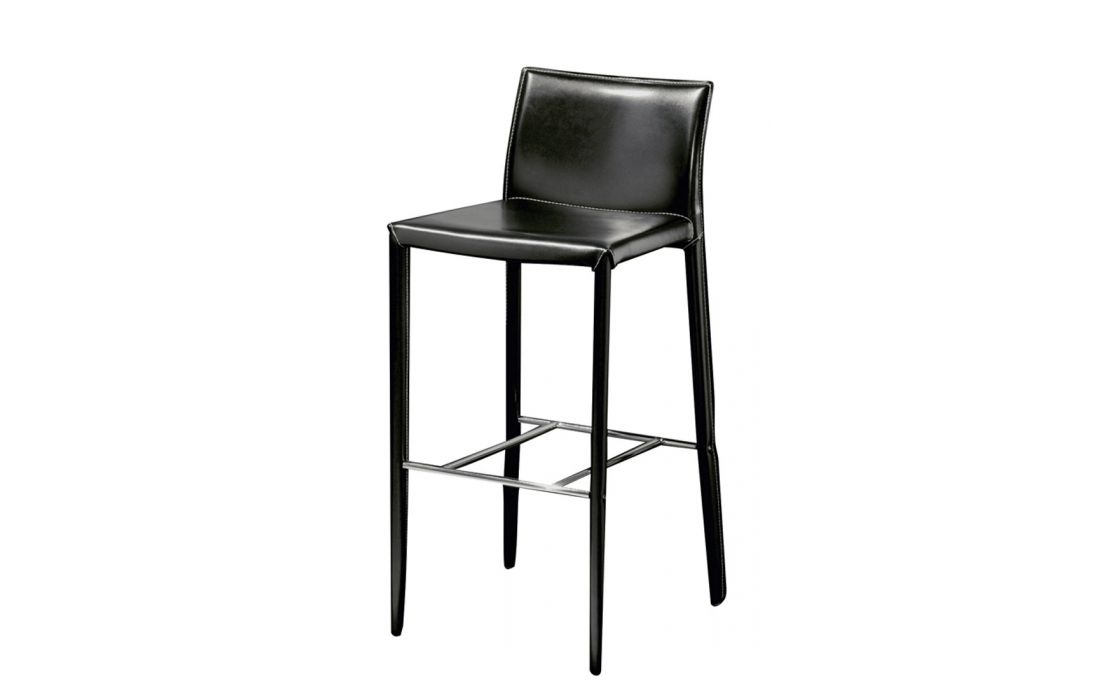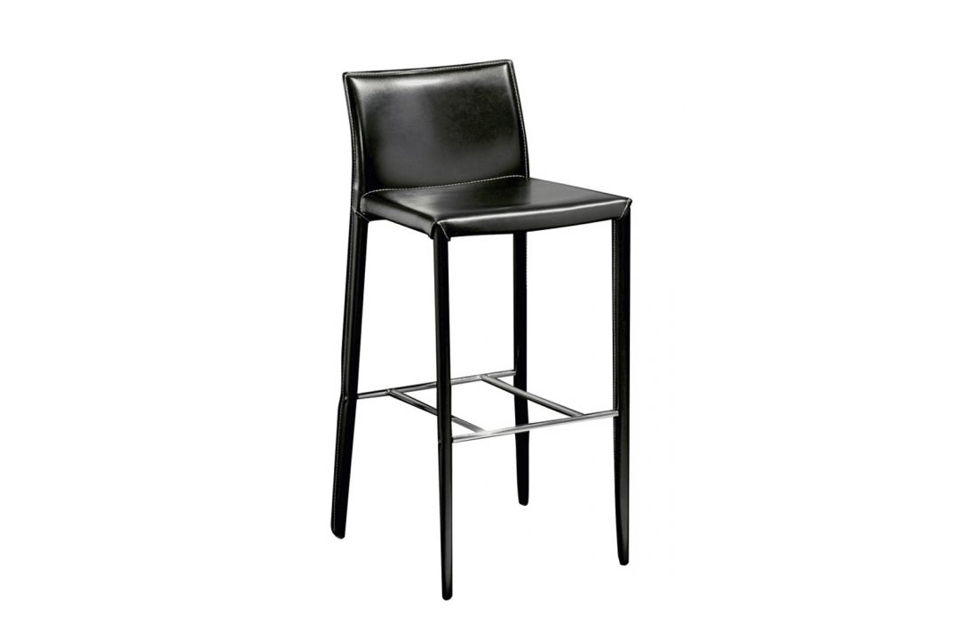 Barstool with finish regenerated in black leather, with stitches to make contrast and legs with metal detail
