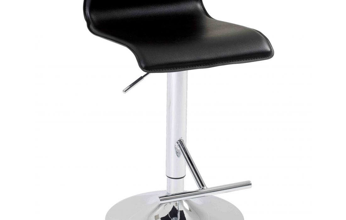 Barstool with structure in chromed metal and coating regenerated black leather, with points to make contrast