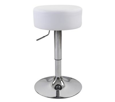 Barstool with chromed steel structure and seat in synthetic leather in white or black color.