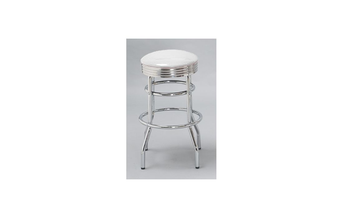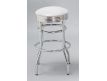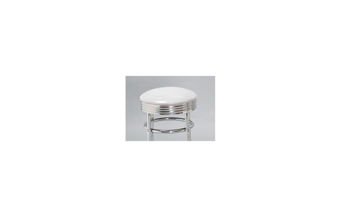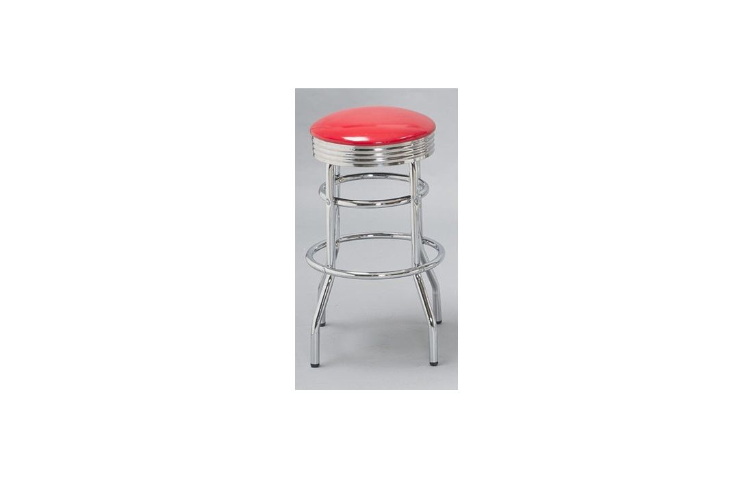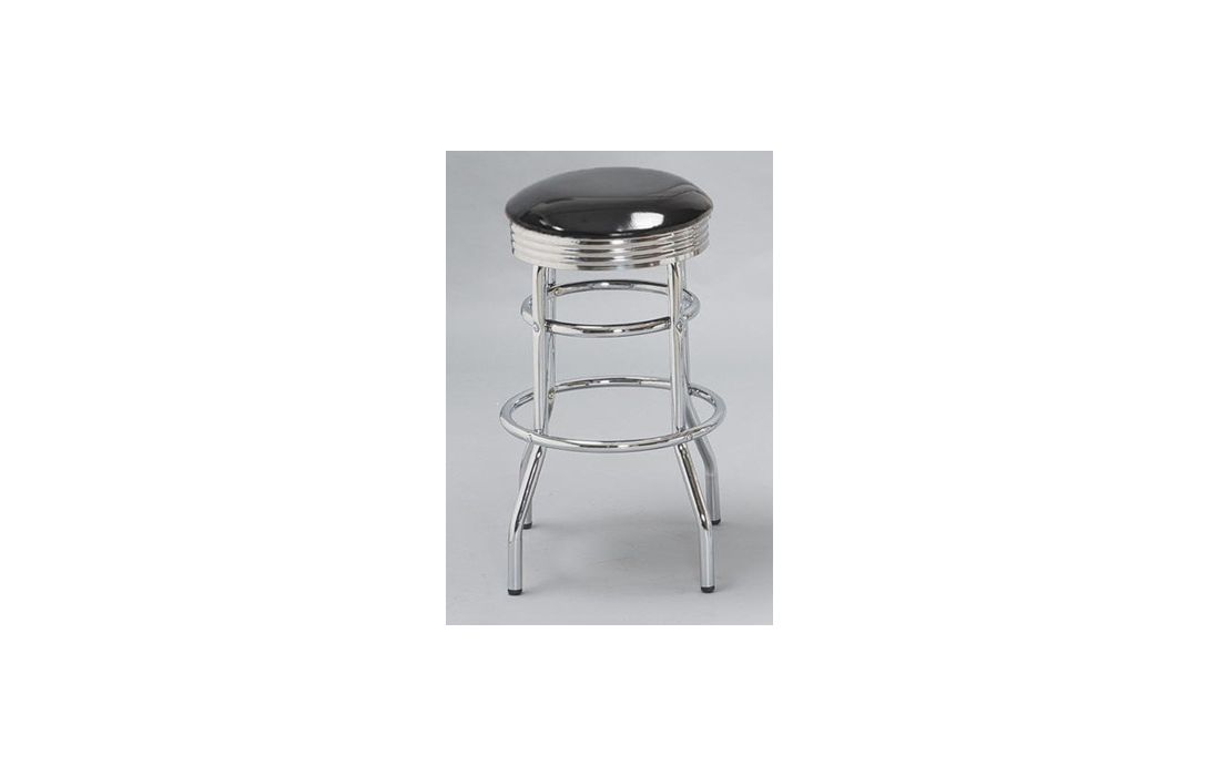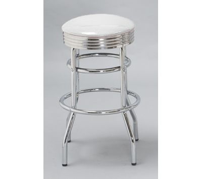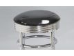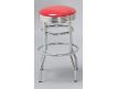 Barstool with chromed steel frame and seat in synthetic leather in white, black or red color.
