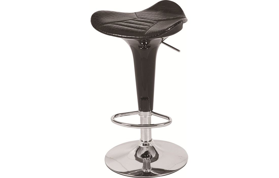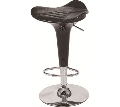 Barstool with chromed steel frame and abs seat in black synthetic leather.