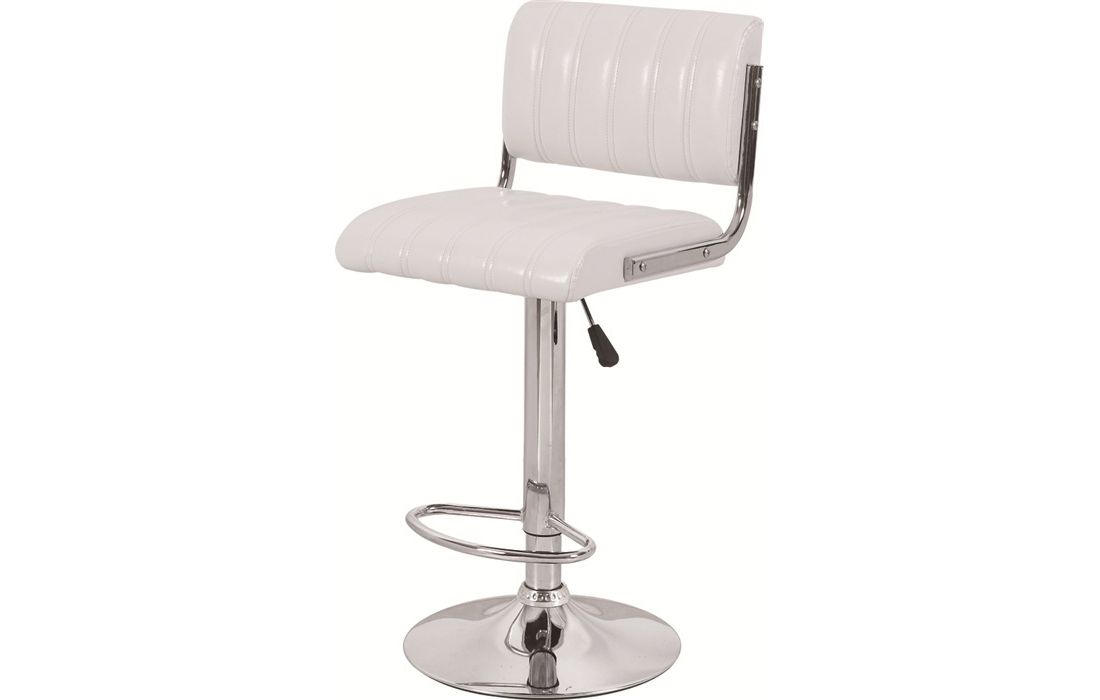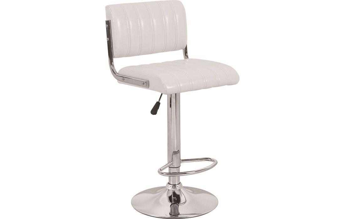 Barstool with chromed metal structure, seat in synthetic leather in white or black color.