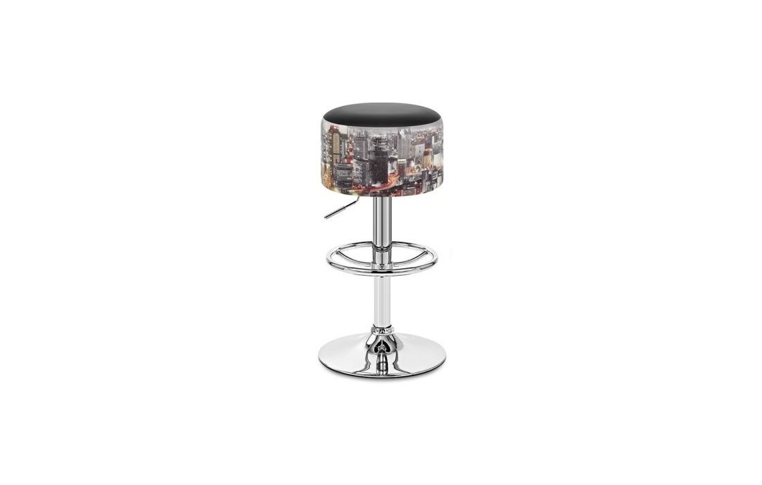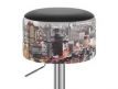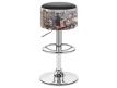 Barstool with chromed steel frame seat in black synthetic leather with decoration.