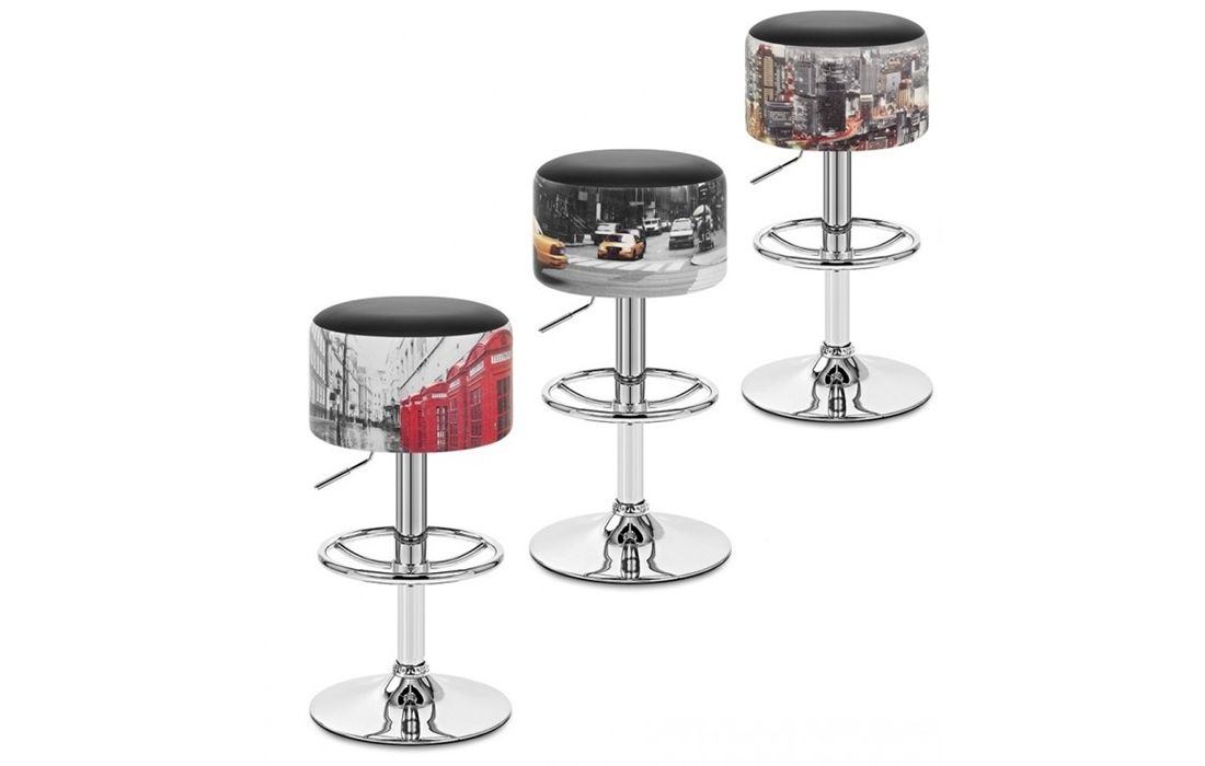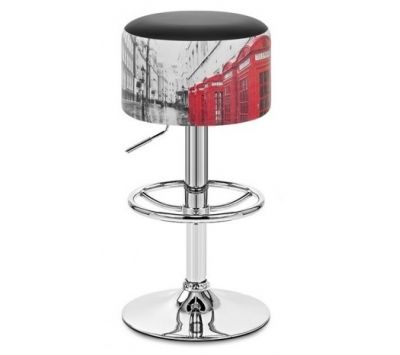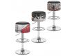 Barstool with chromed steel frame seat in black synthetic leather with decoration.