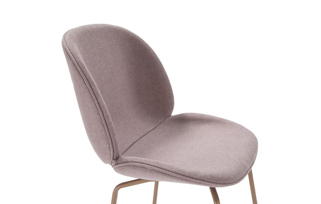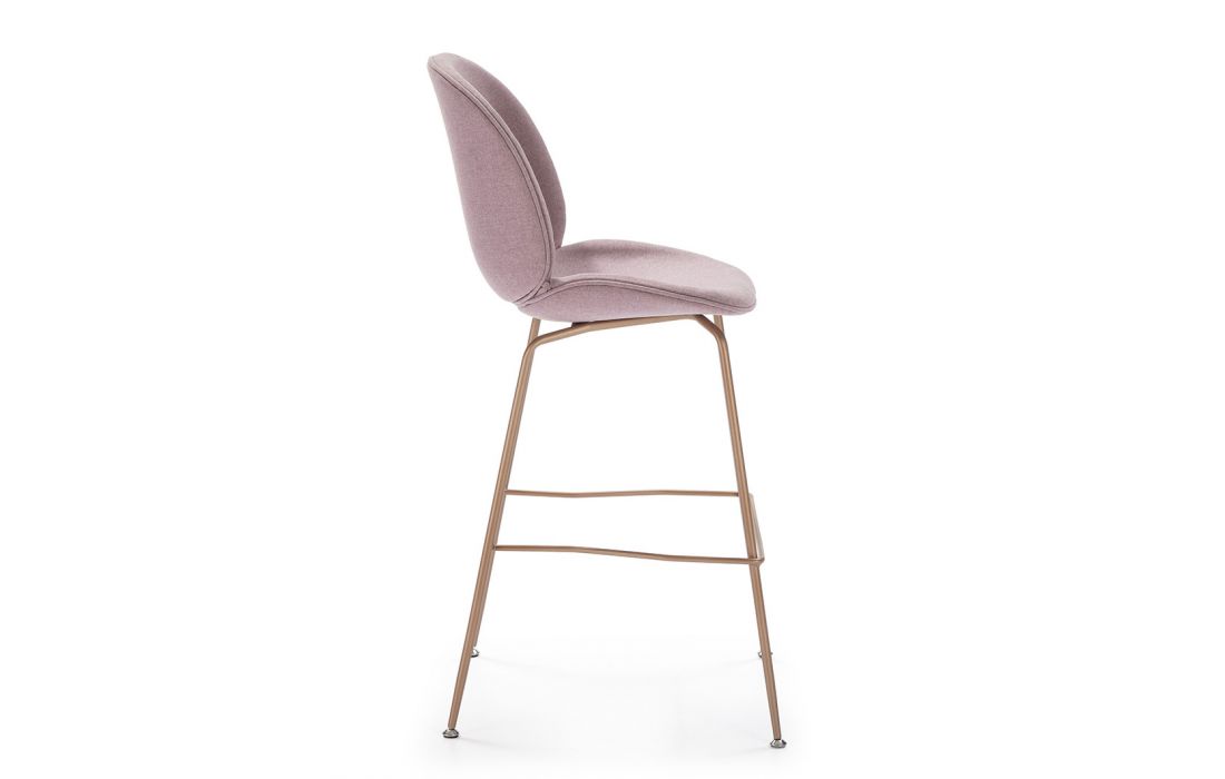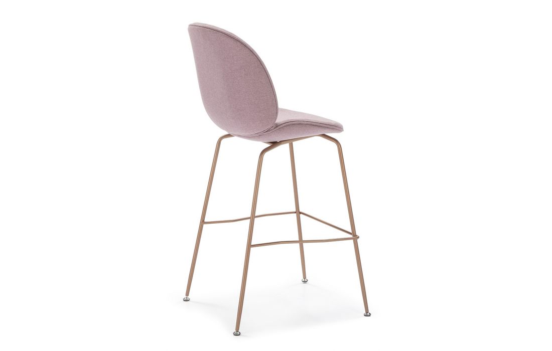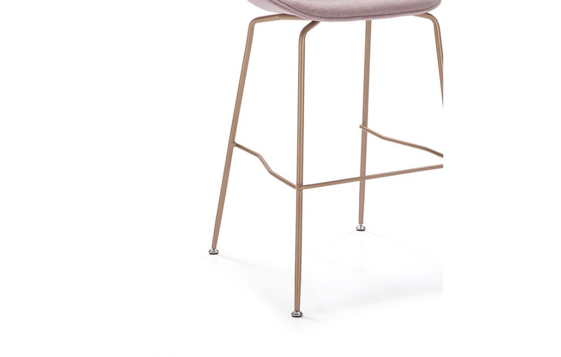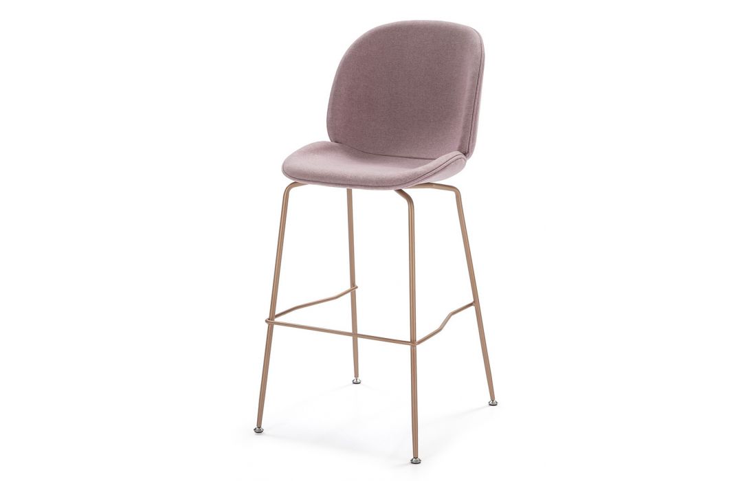 Bar stool with golden metal frame and seat upholstered in pink fabric