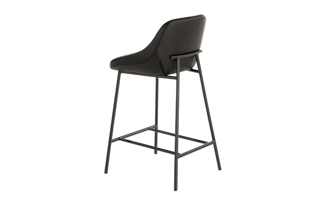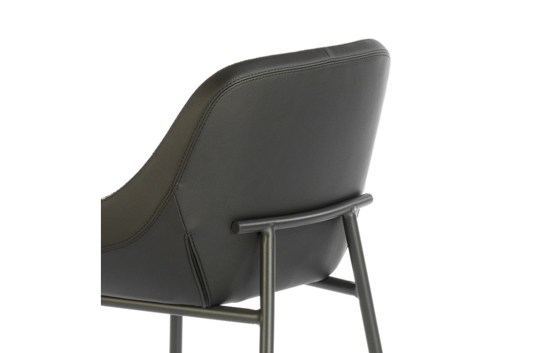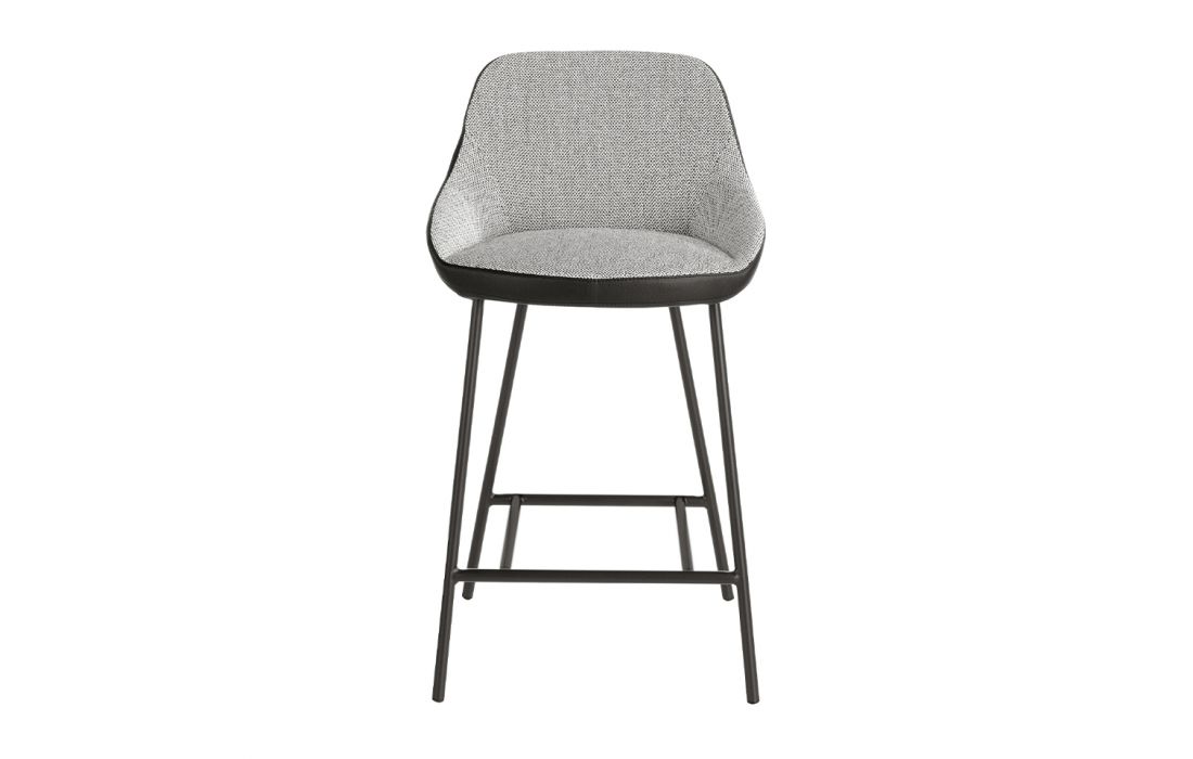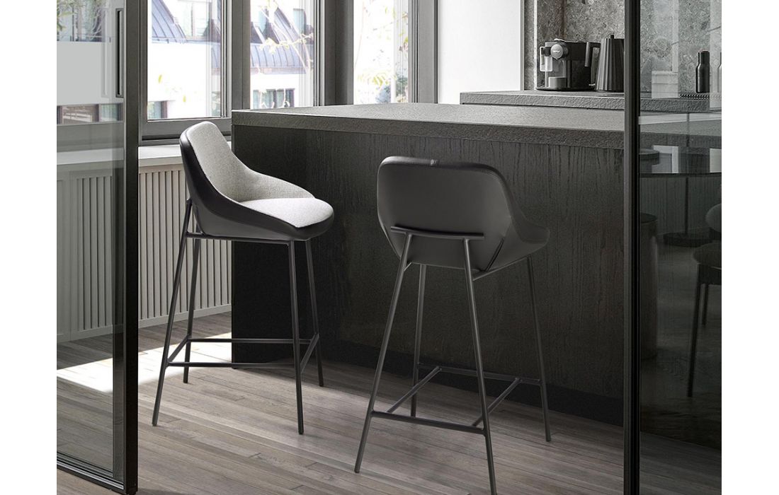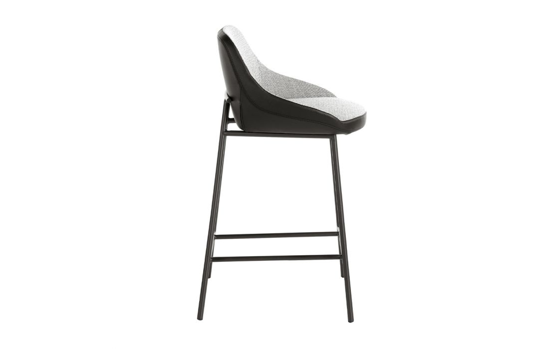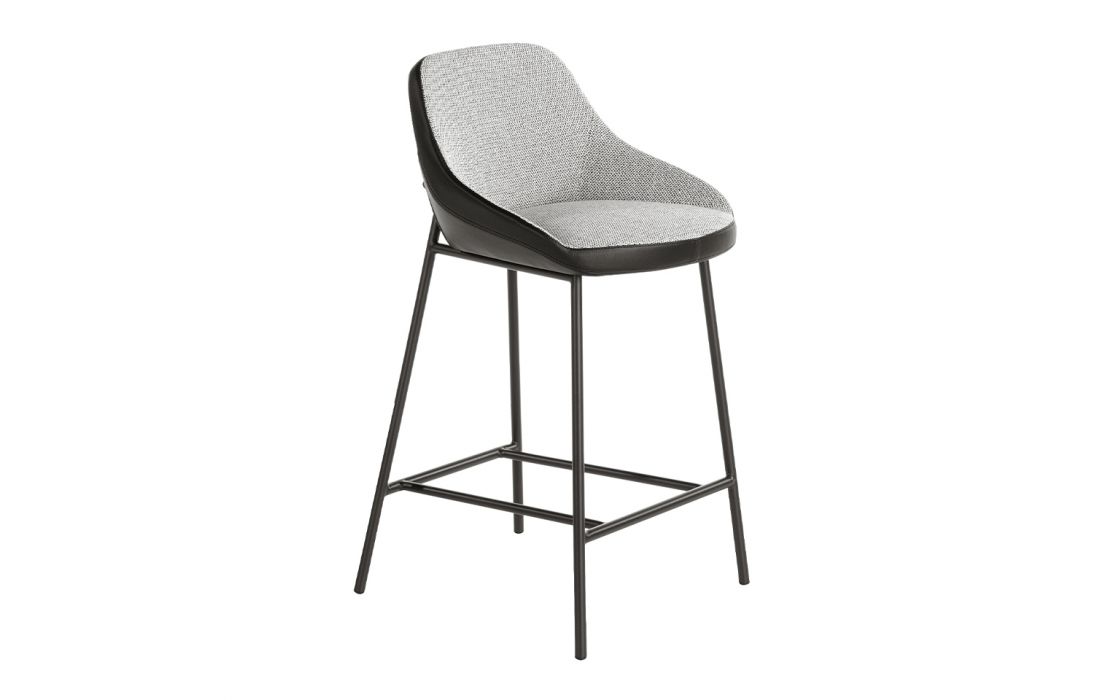 Bar stool upholstered in fabric and synthetic leather with black epoxy steel frame